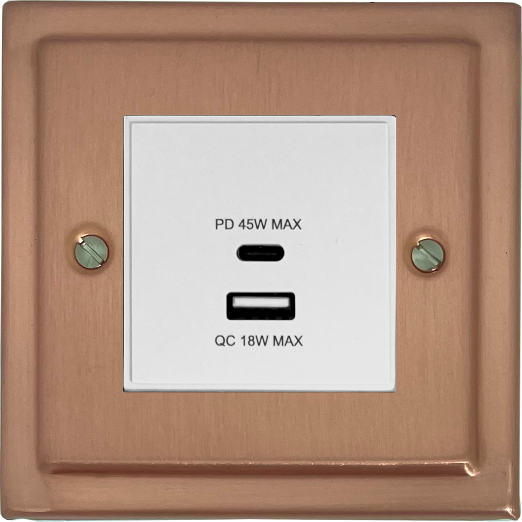 Rose Gold USB Charger (Dual USB A + C Quick Charge) (1 Gang/White Insert) - G+H TRG43W
