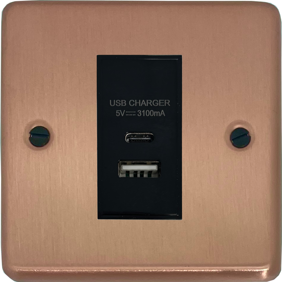 Rose Gold USB Charger (USB-A and USB-C) (1 Gang/Black Insert) - G+H CRG41B