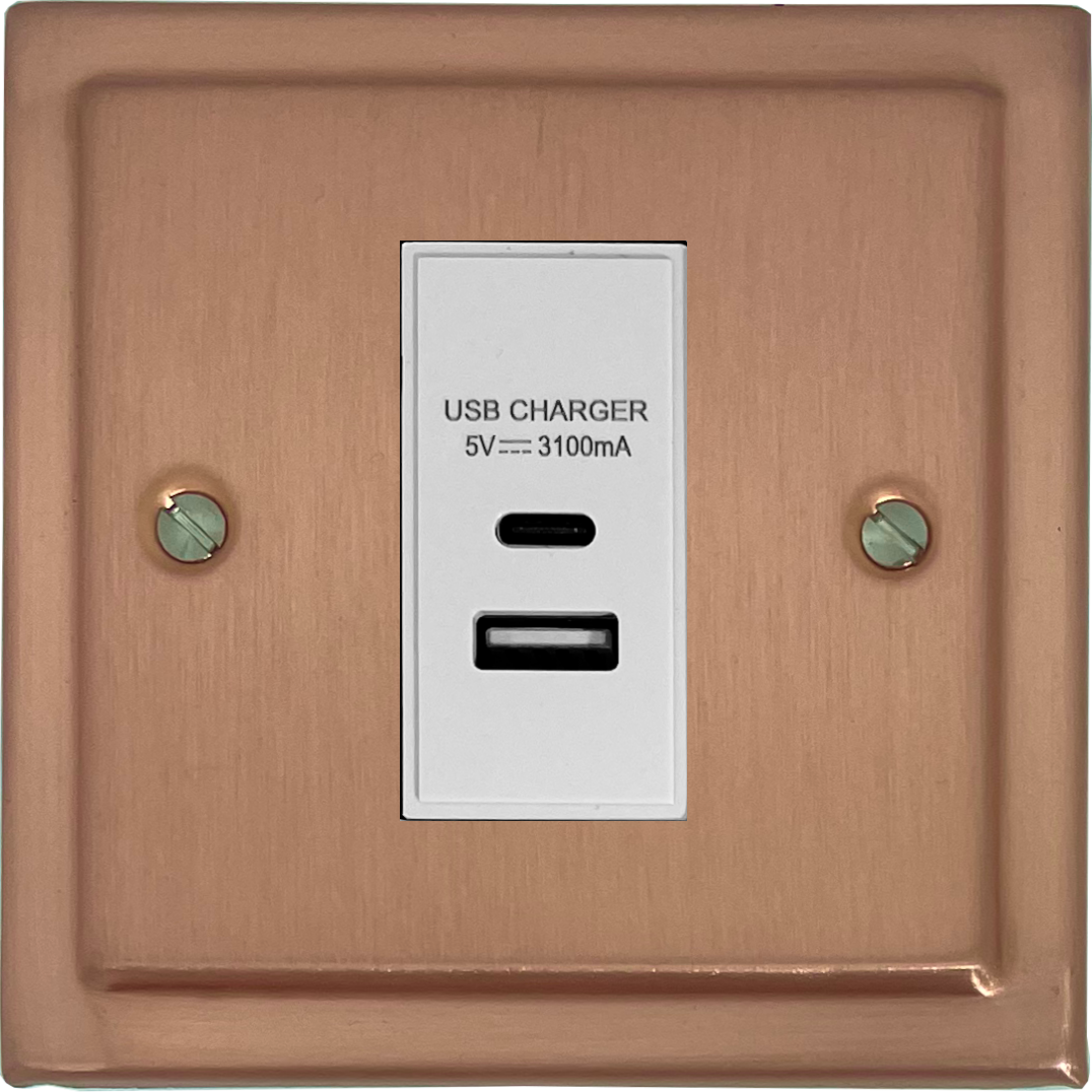 Rose Gold USB Charger (USB-A and USB-C) (1 Gang/White Insert) - G+H TRG41W