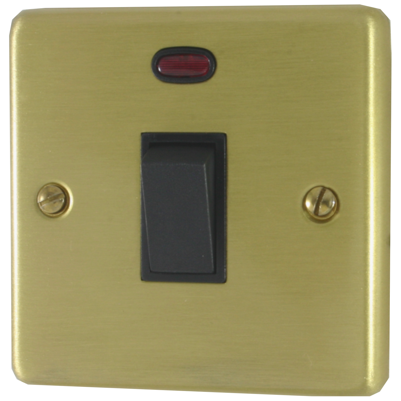 Satin Brass 20 Amp DP Switch with Neon (Black Switch) - G+H CSB26B