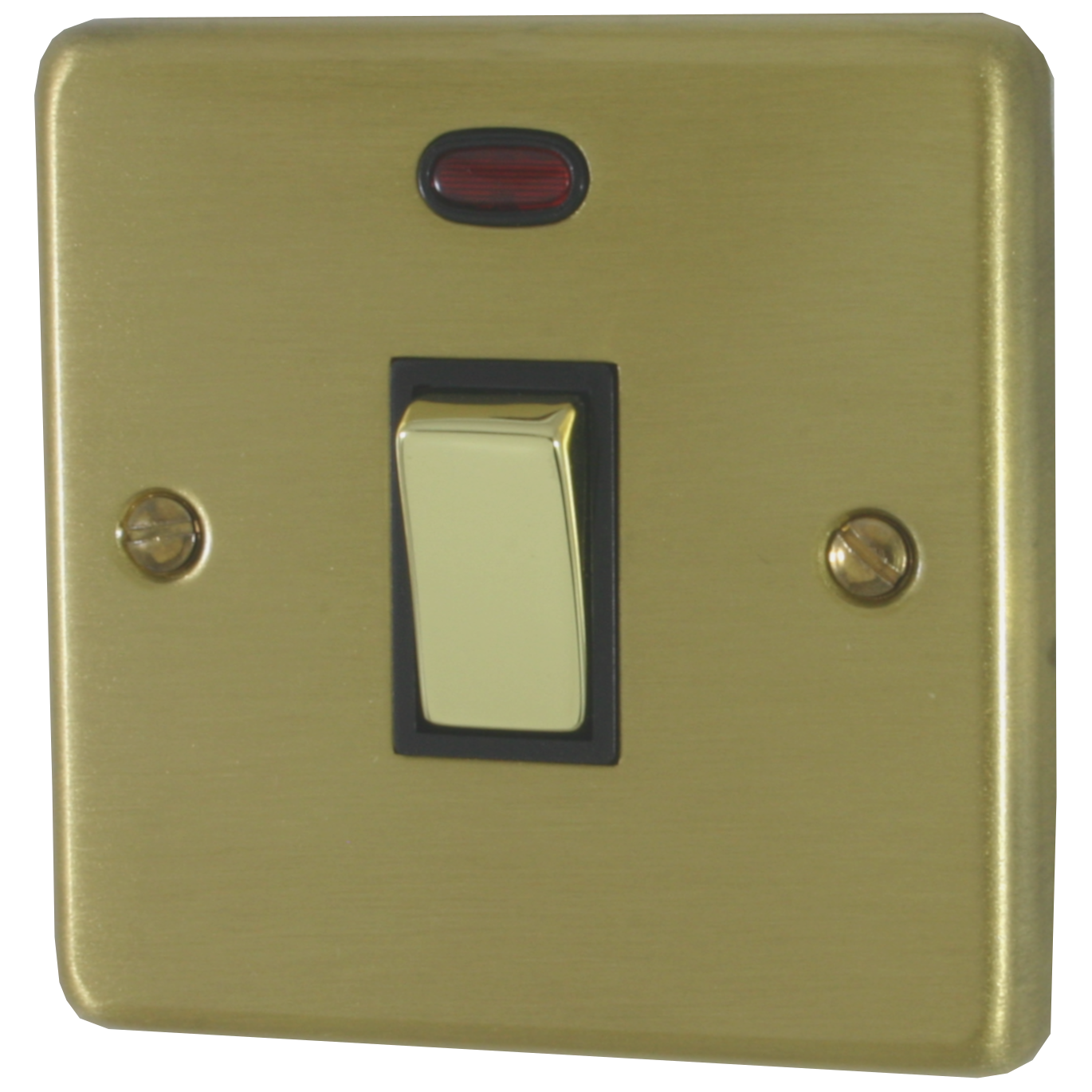 Satin Brass 20 Amp DP Switch with Neon (Brass Switch) - G+H CSB326