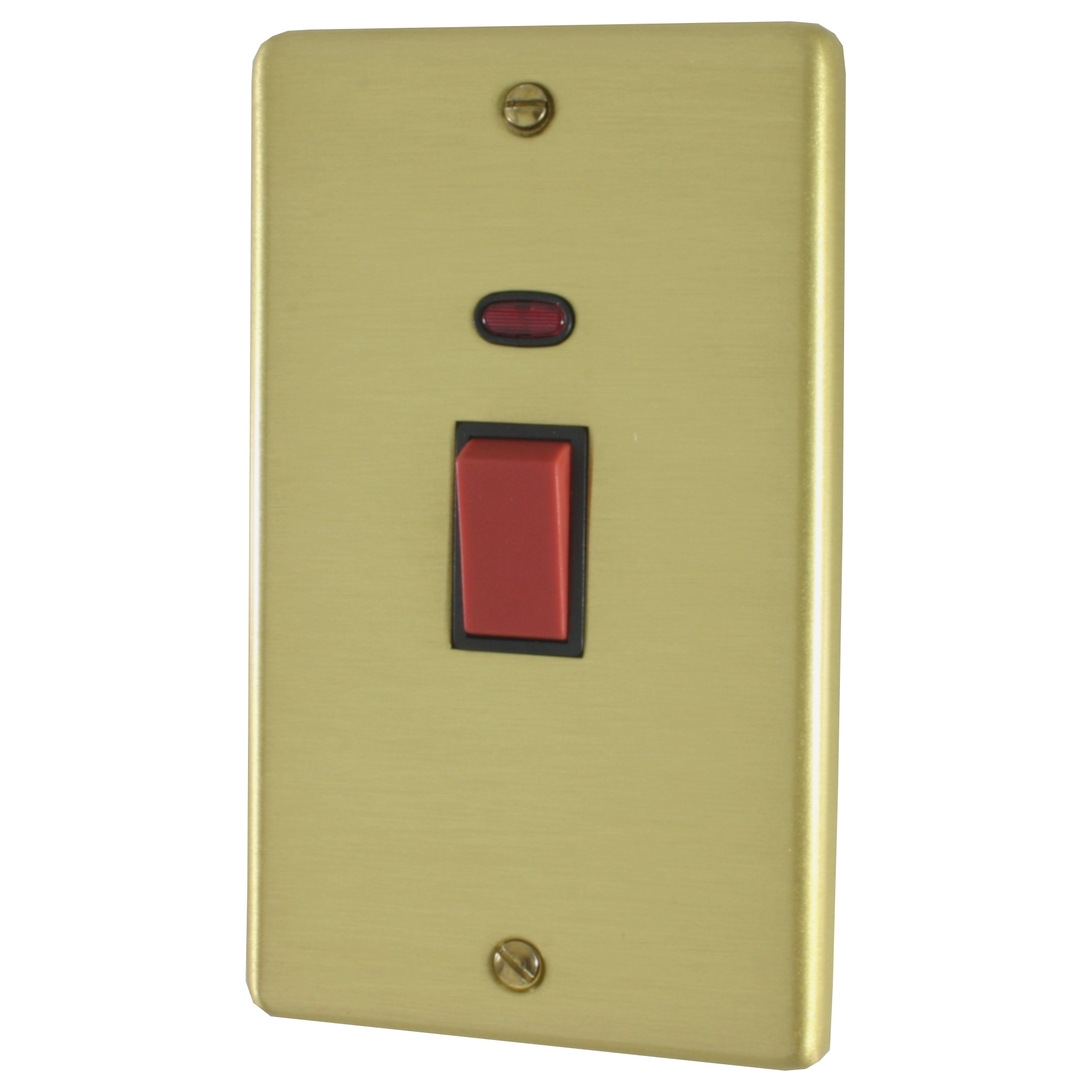 Satin Brass Cooker Switch (45 Amp/Double Plate/Black Surround)