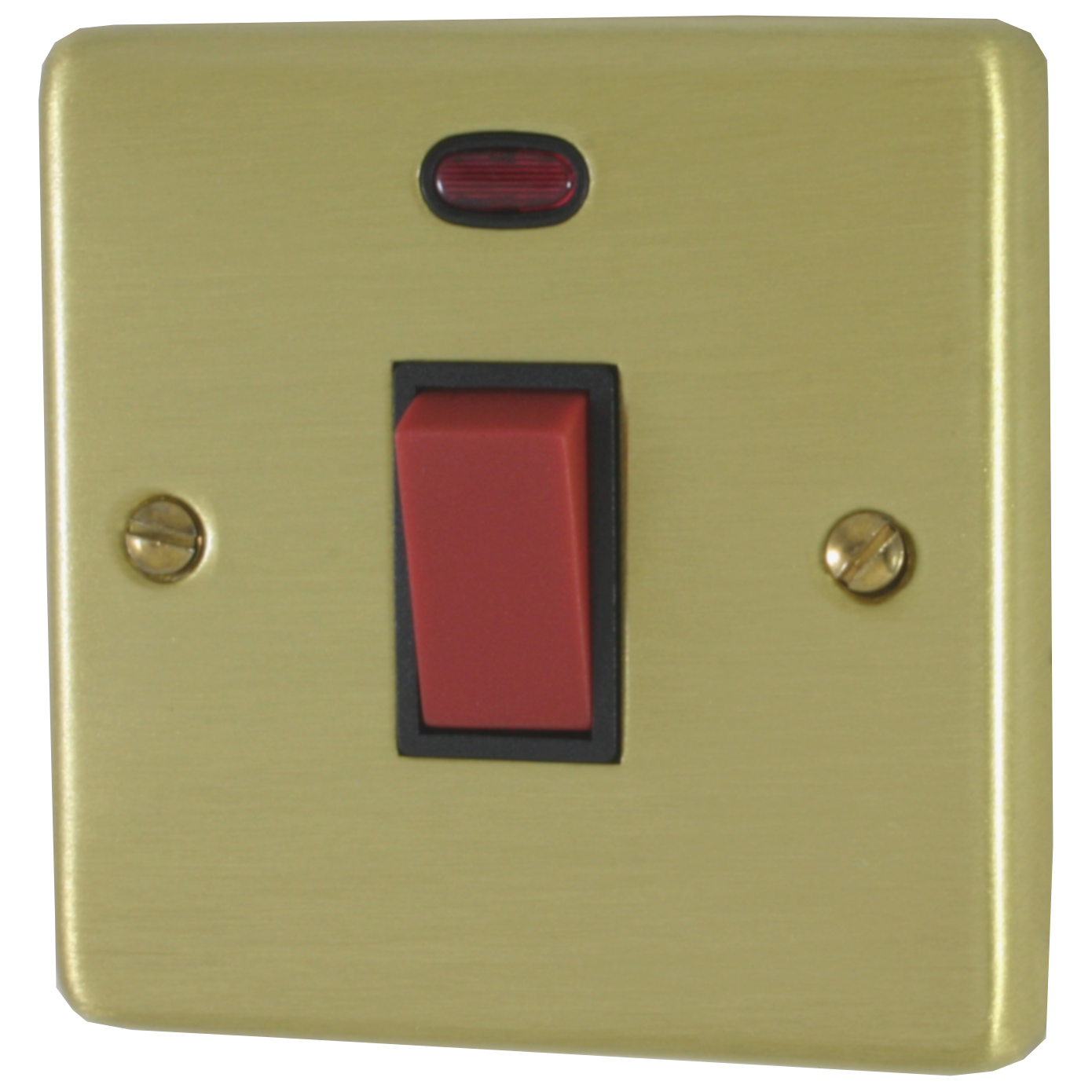 Satin Brass Cooker Switch (45 Amp/Single Plate/Black Surround)
