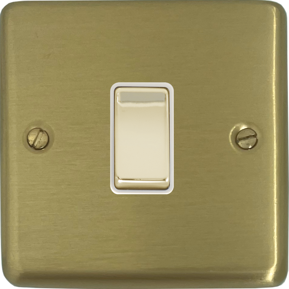 Satin Brass Light Switch (1 Gang/Brass Switch/White Inserts) - G+H CSB201