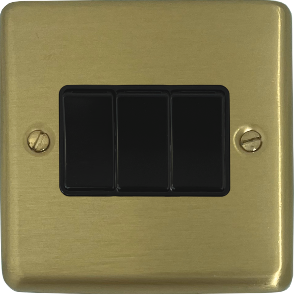 Satin Brass Light Switch (3 Gang/Black Switches) - G+H CSB3B