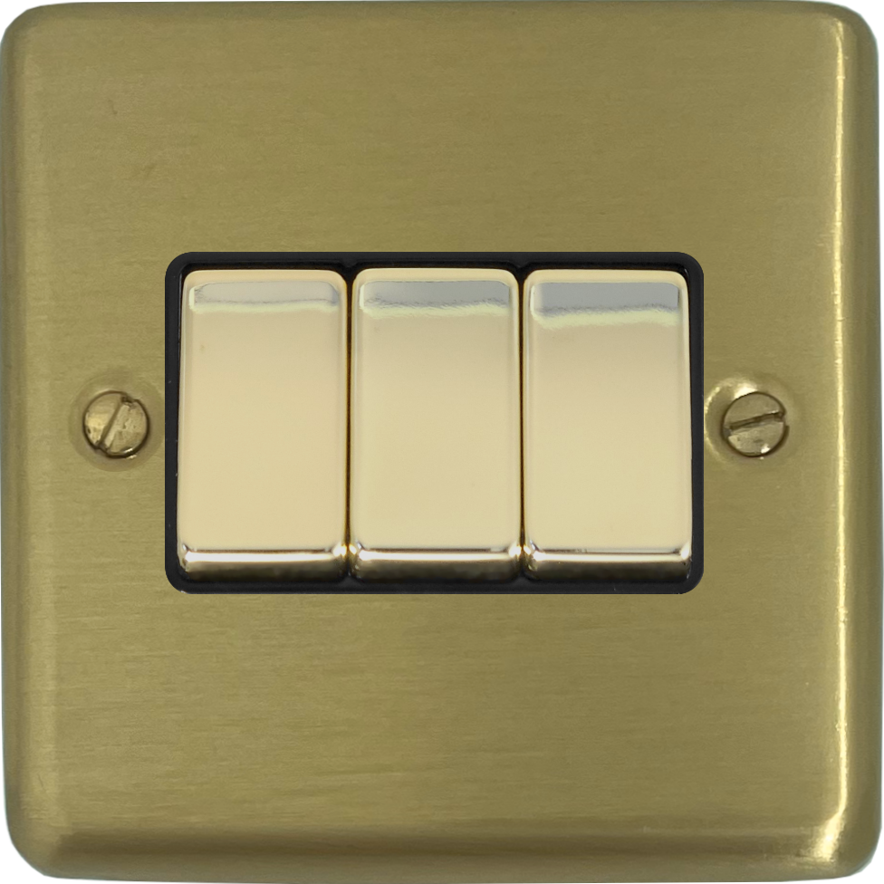 Satin Brass Light Switch (3 Gang/Brass Switches) - G+H CSB303