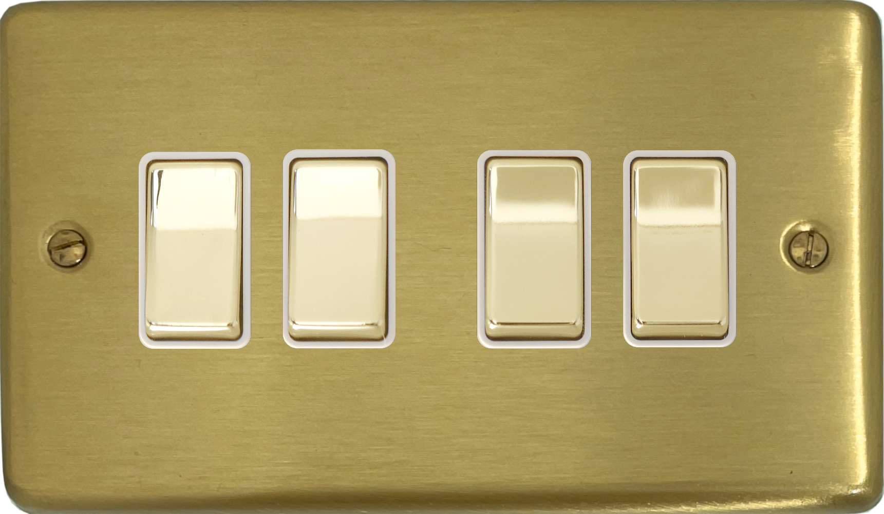 Satin Brass Light Switch (4 Gang/Brass Switch/White Inserts) - G+H CSB204