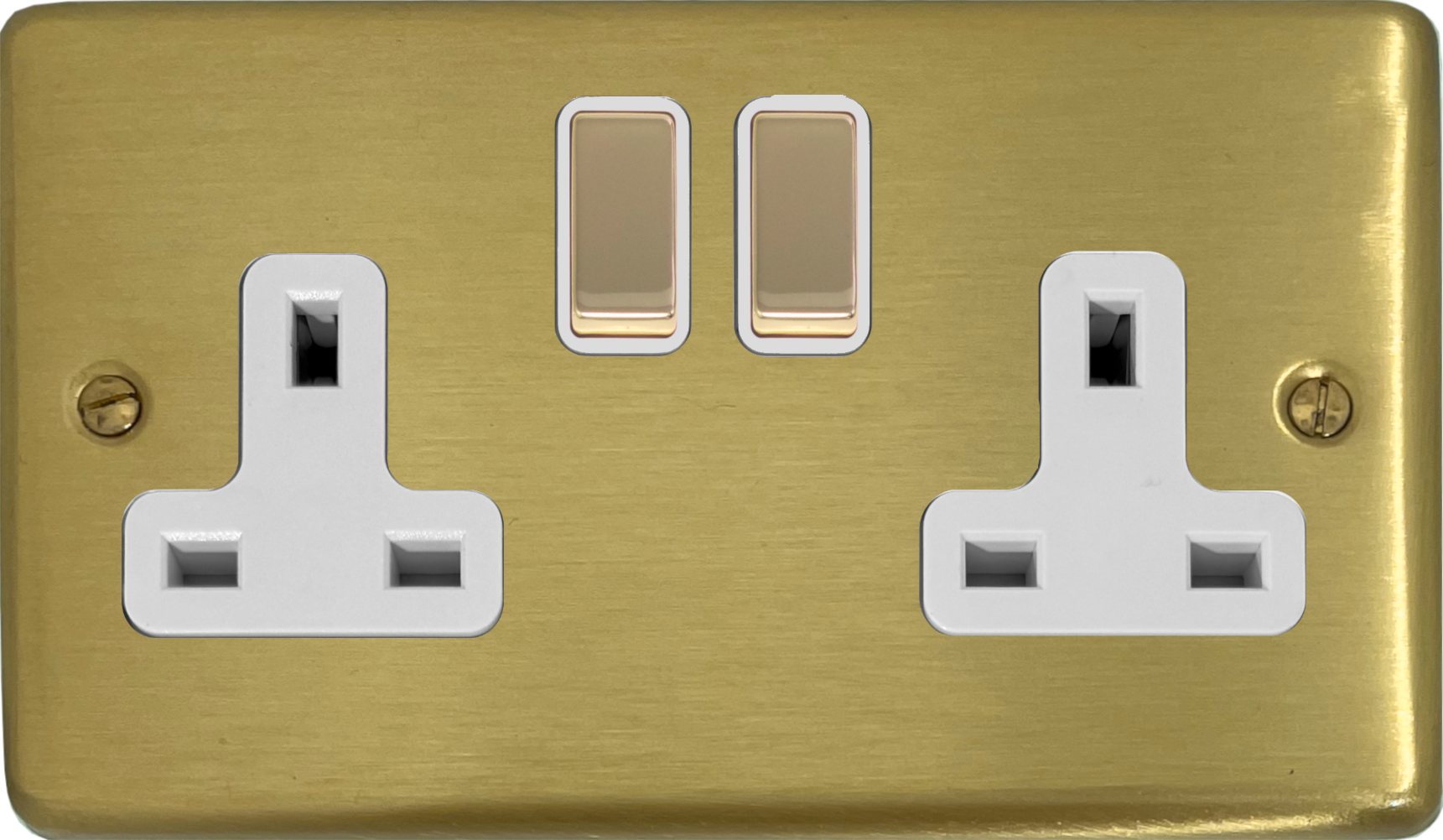 Satin Brass Socket (Double Socket/Brass Switch/White Inserts) - G+H CSB210