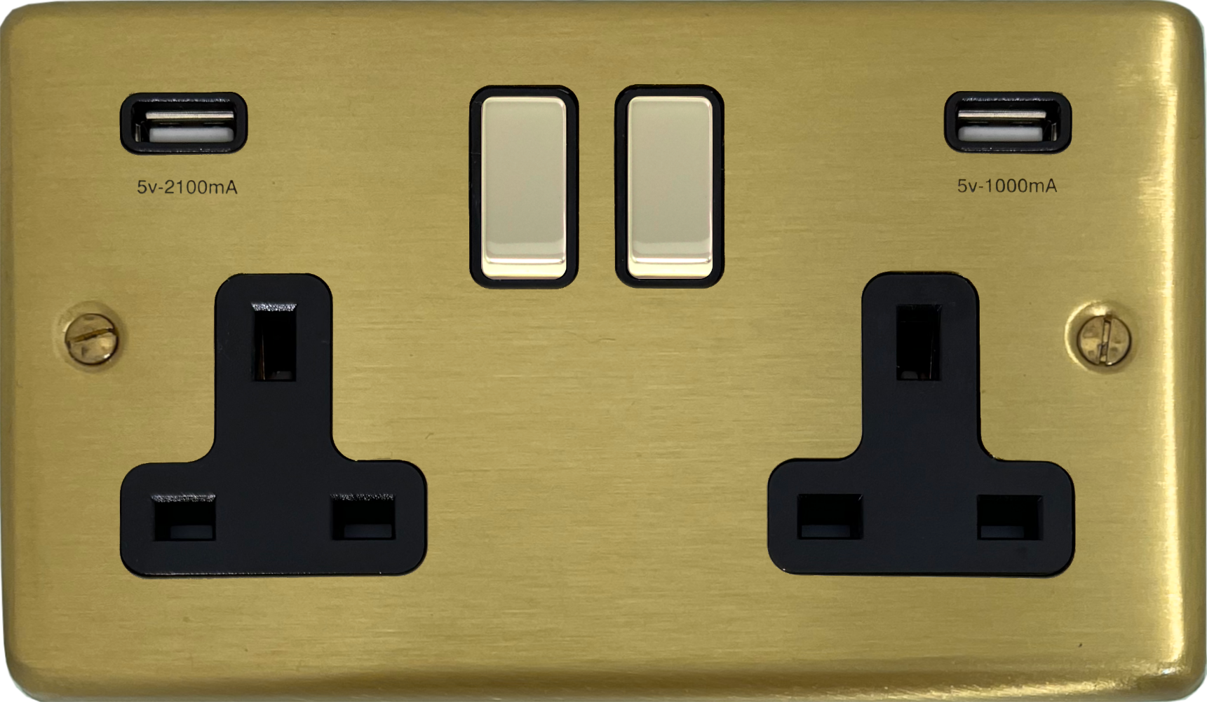 Satin Brass Socket with USB (Double Socket/Brass Switches) - G+H CSB3910