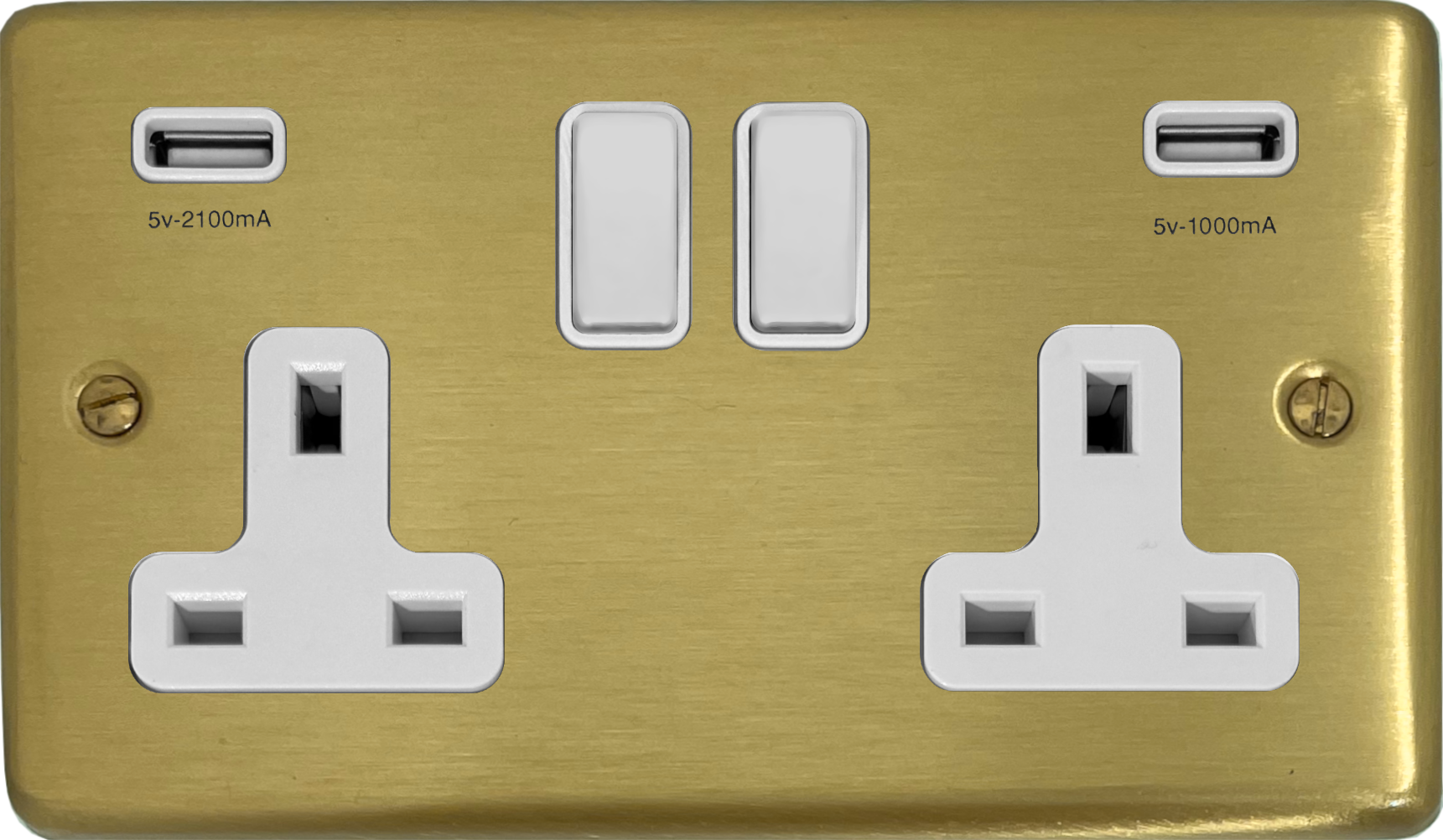 Satin Brass Socket with USB (Double Socket/White Switches) - G+H CSB910W