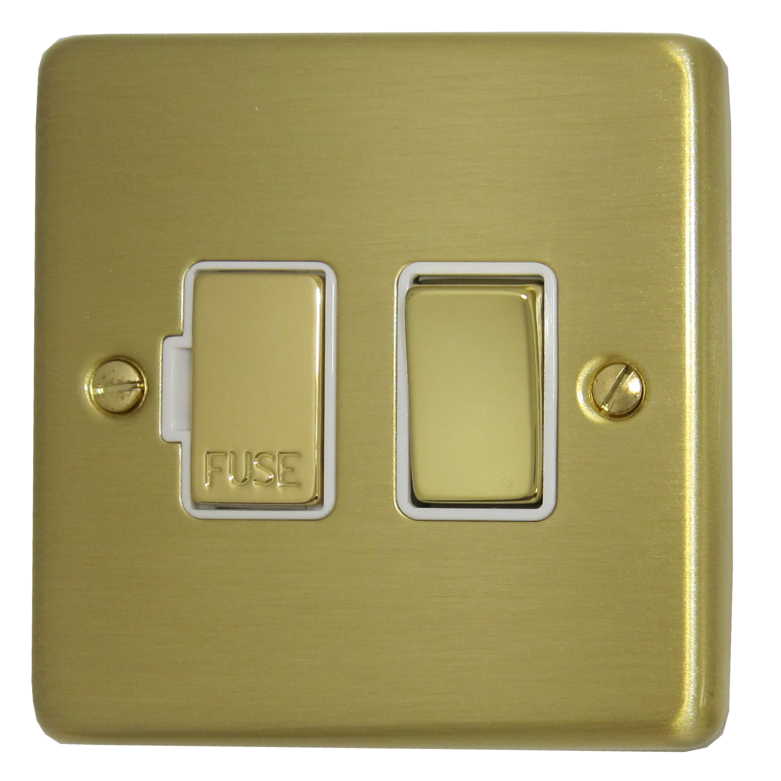 Satin Brass Switched Fused Spur (Brass Switch/White Inserts) - G+H CSB257