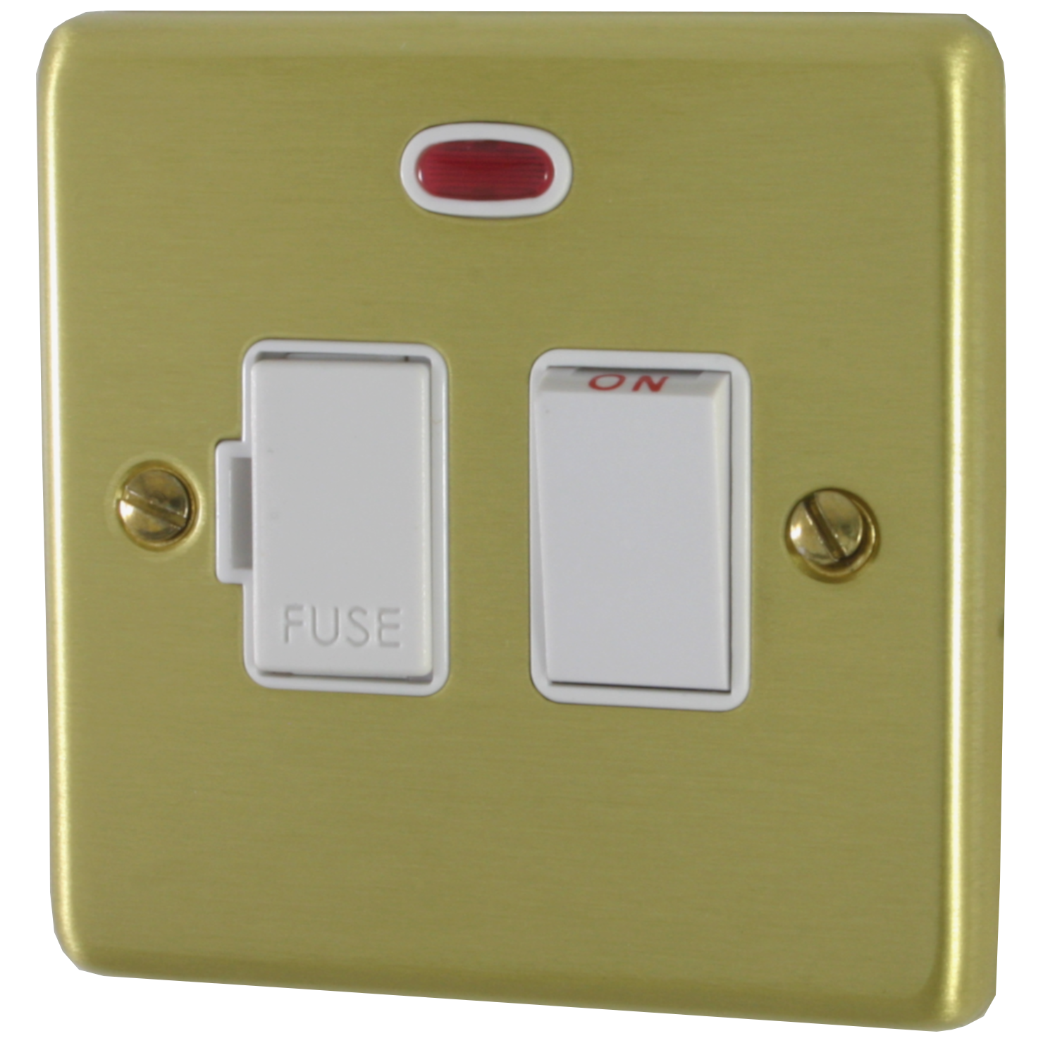 Satin Brass Switched Fused Spur (Neon/White Switch) - G+H CSB27W