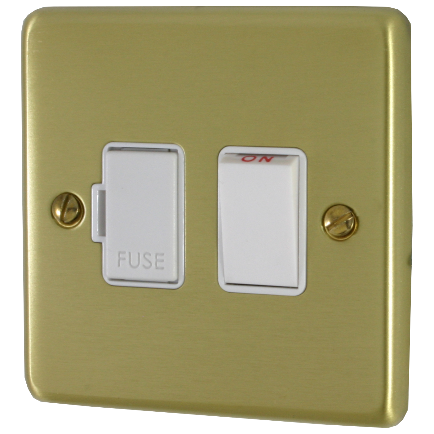 Satin Brass Switched Fused Spur (White Switch) - G+H CSB57W