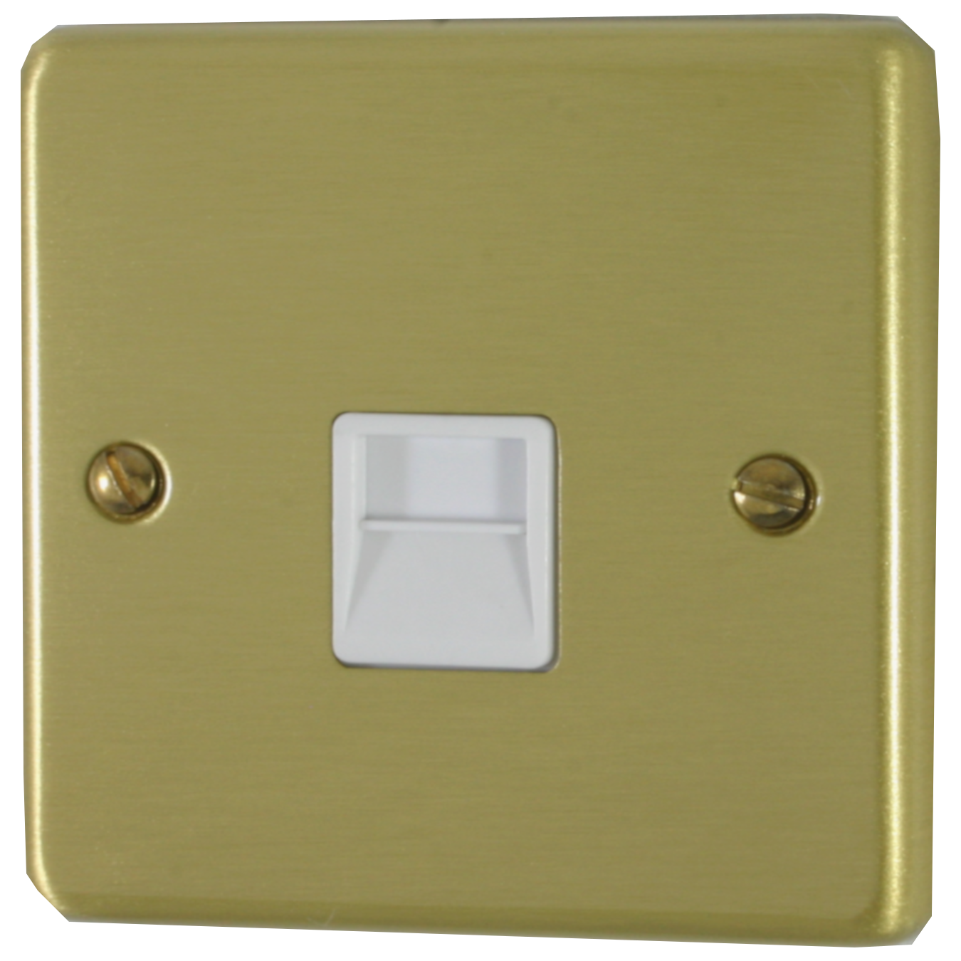Satin Brass Telephone Socket (Slave/White Surround) - G+H CSB34W