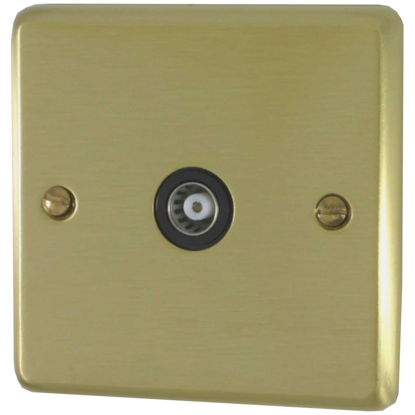 Satin Brass TV Socket (1 Gang/Black Surround)