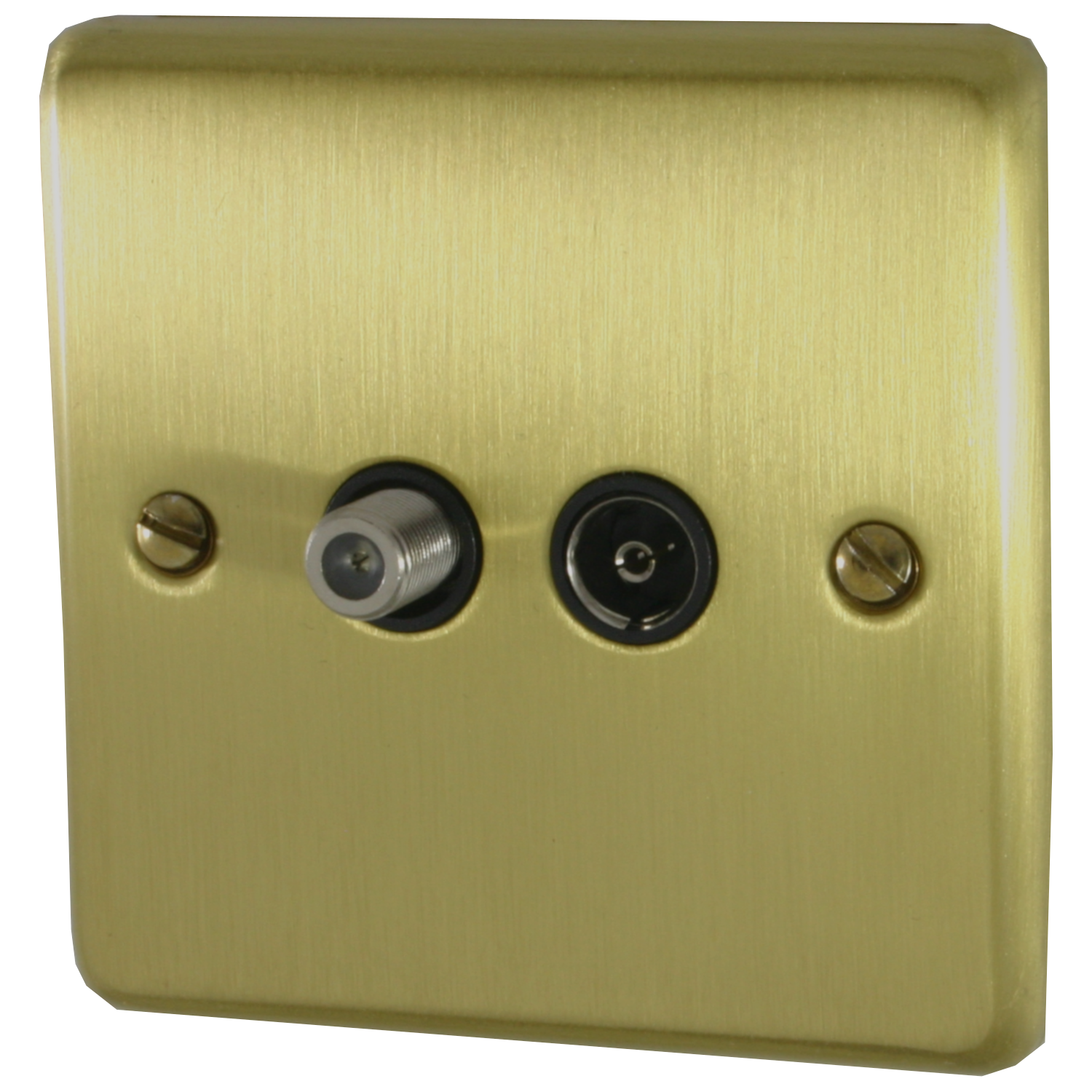 Satin Brass TV/Satellite Socket (Black Surround) - G+H CSB38B