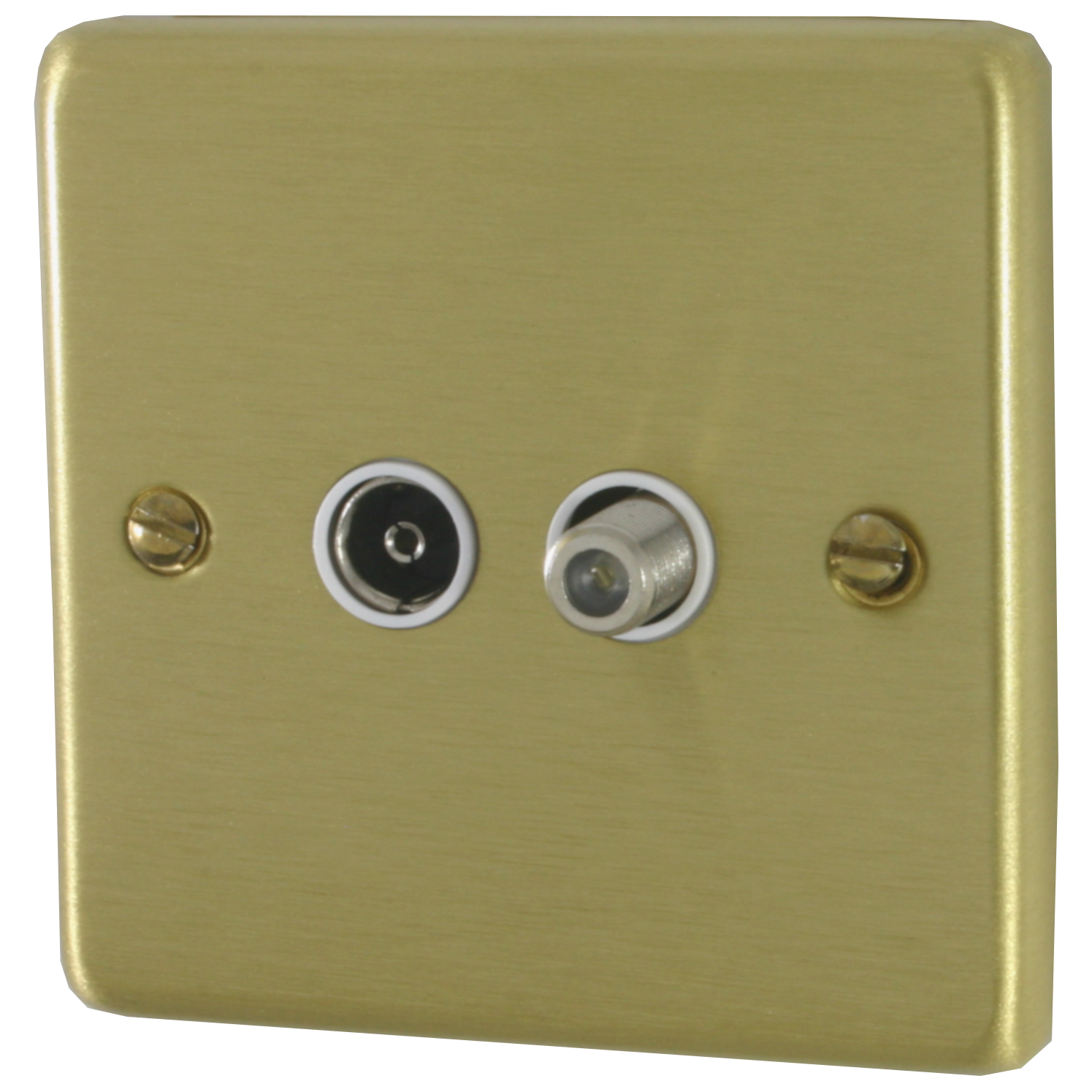Satin Brass TV/Satellite Socket (White Surround) - G+H CSB38W