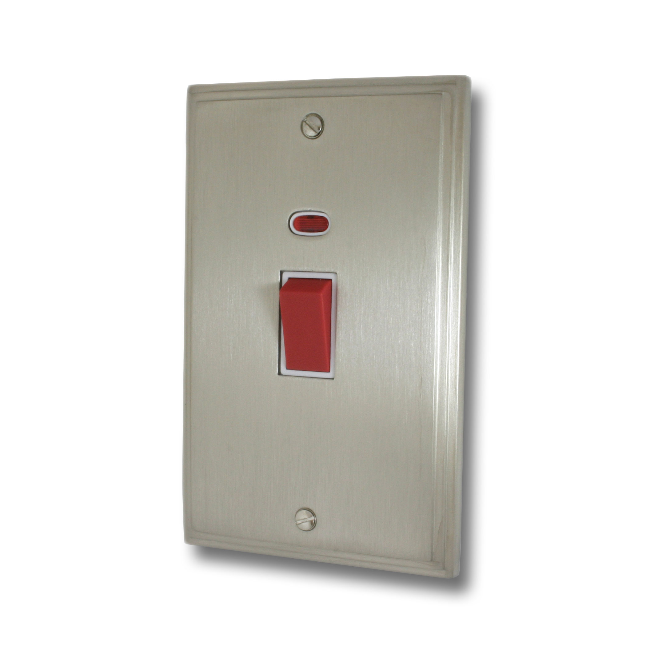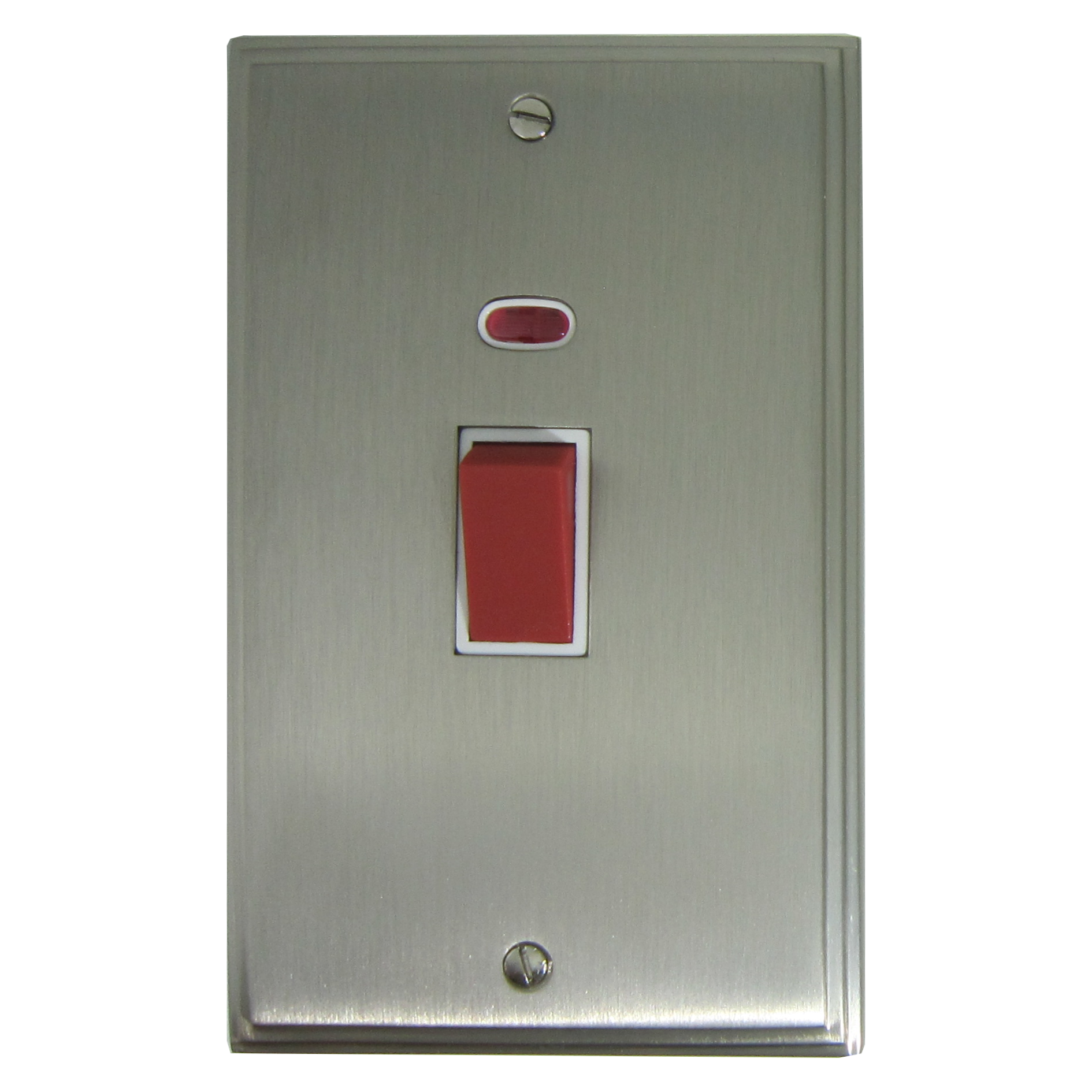 Satin Nickel 45A DP Switch with Neon (White Insert/Red Switch/Vertical Plate)