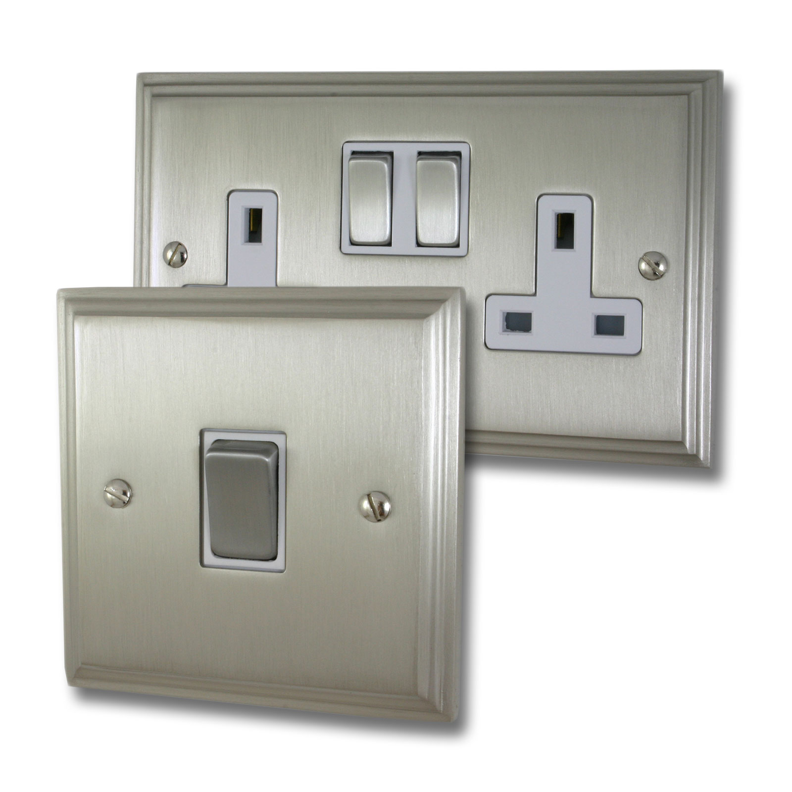 Satin Nickel 5A 3 Pin Socket (White Insert)