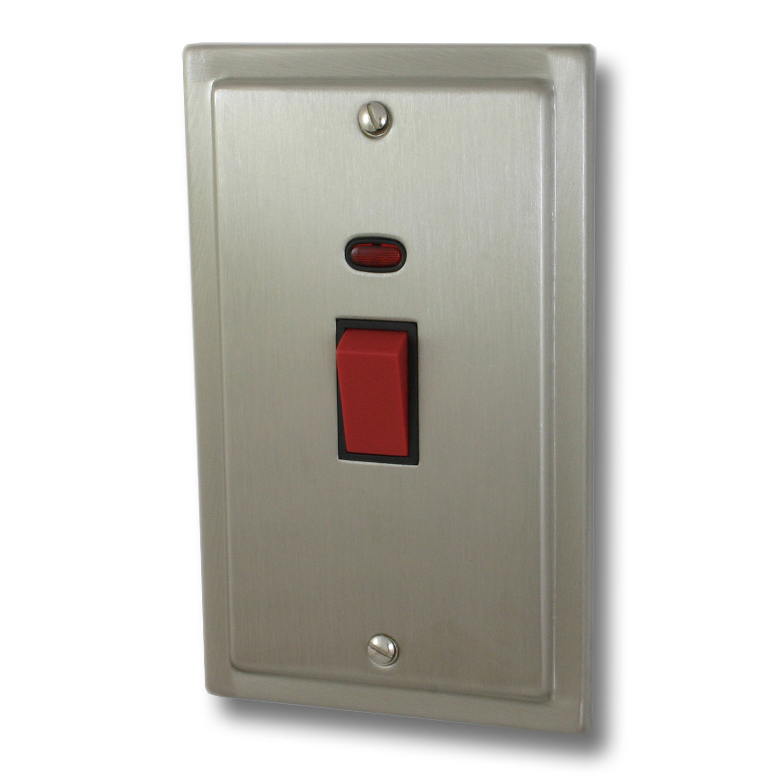 Satin Nickel Cooker Switch (45 Amp/Double Plate/Black Insert)