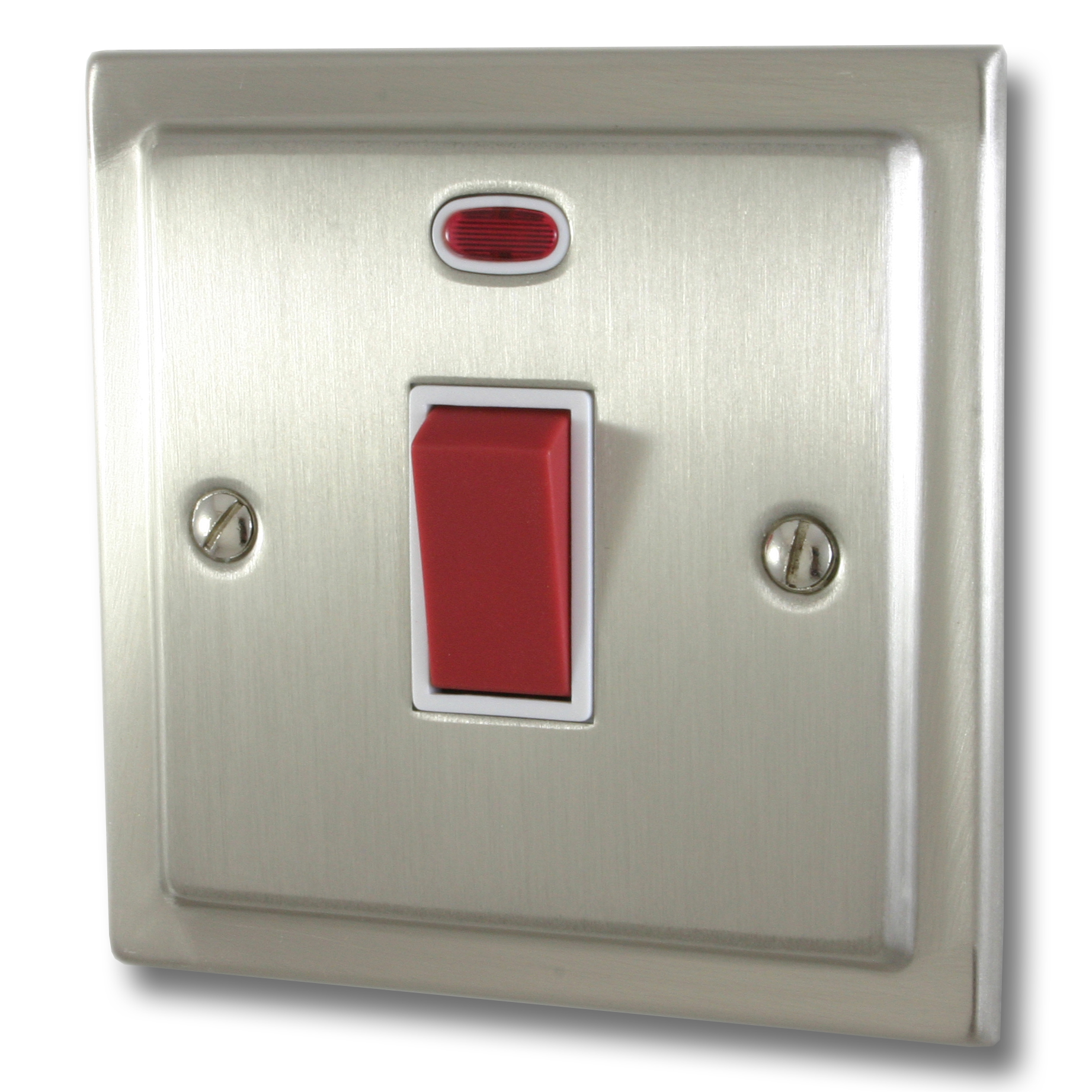 Satin Nickel Cooker Switch (45 Amp/Single Plate/White Insert) - G+H TSN46W
