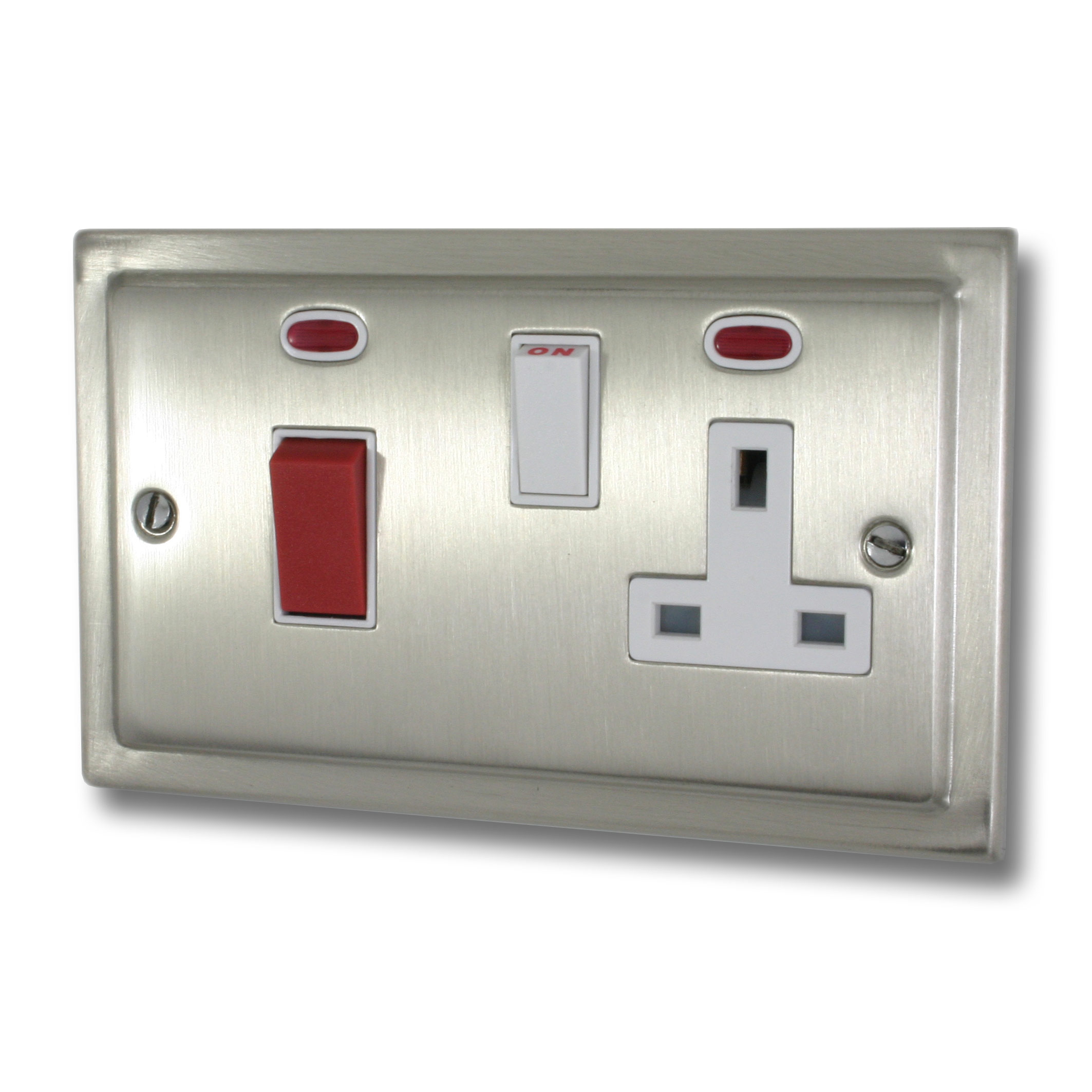 Satin Nickel Cooker Switch with Socket (White Switch)