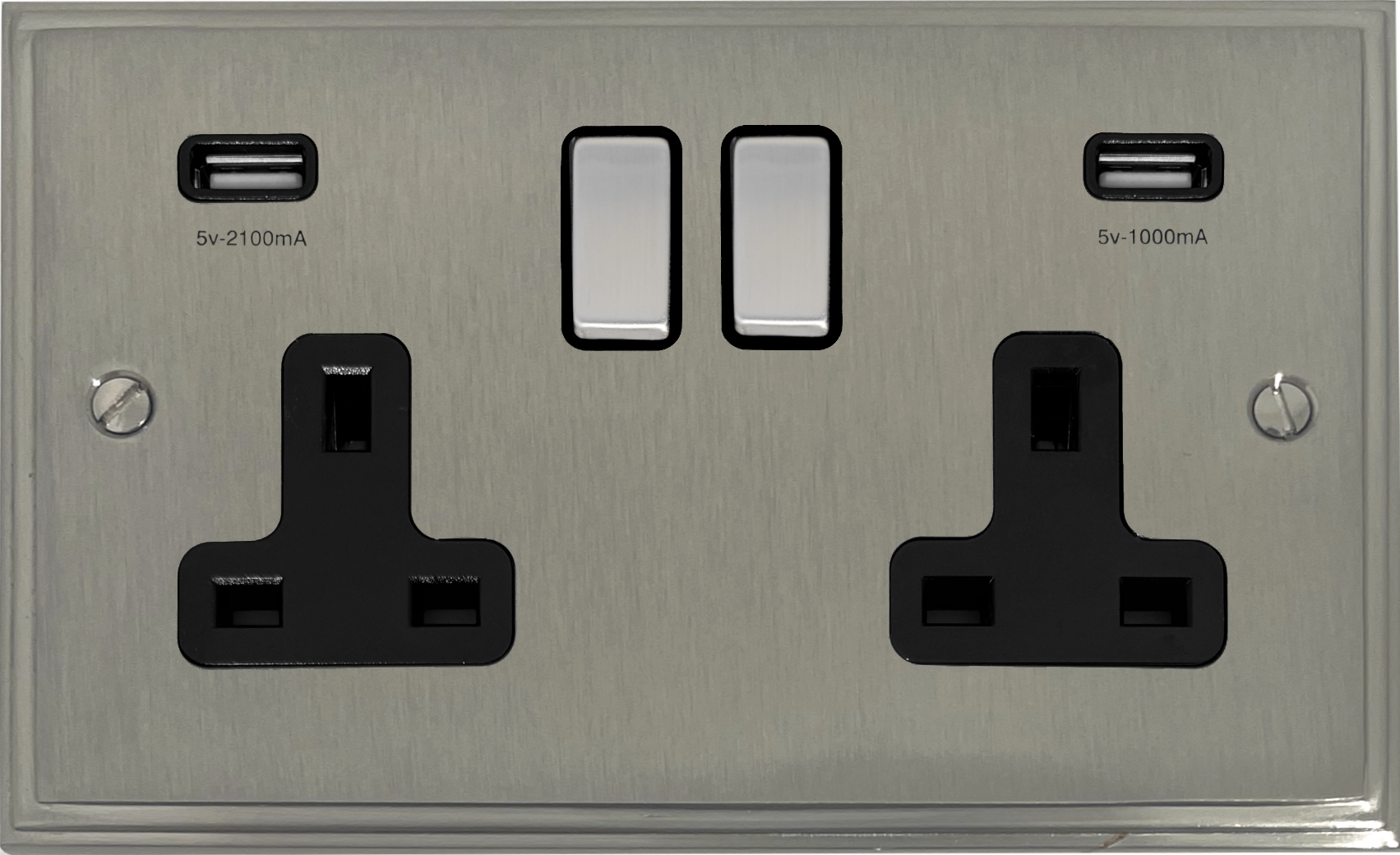 Satin Nickel Double Socket with USB (Black Inserts/Steel Switches) - G+H VSN3910