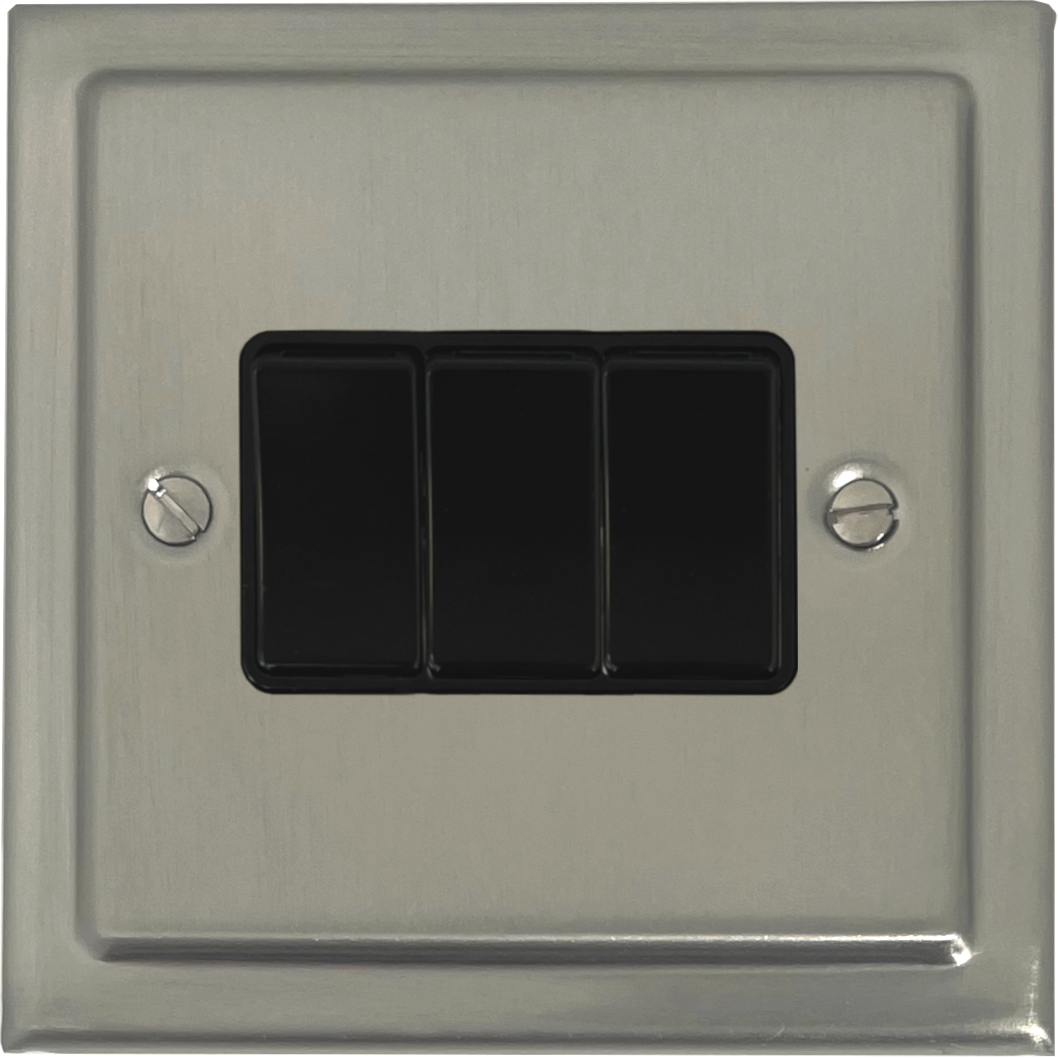 Satin Nickel Light Switch (3 Gang/Black Switches) - G+H TSN3B