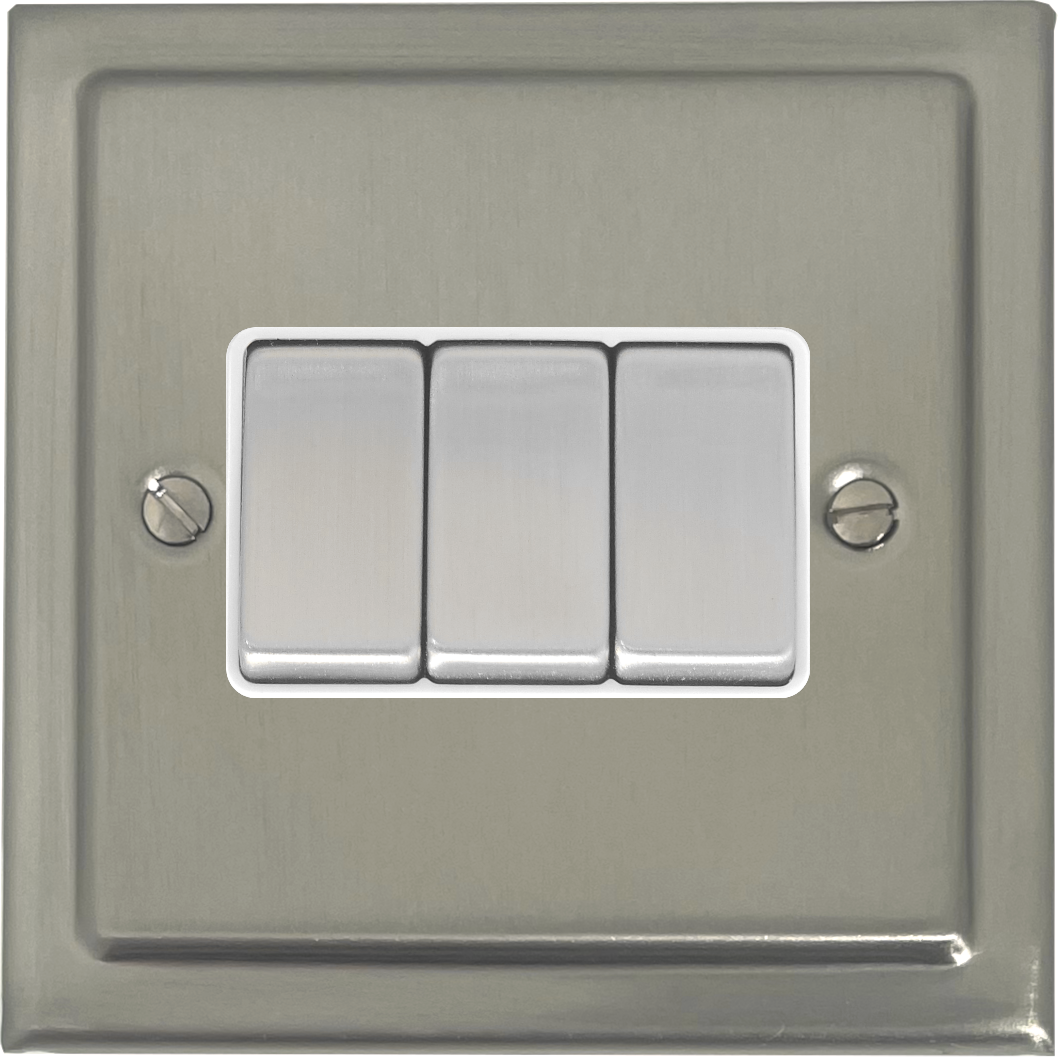 Satin Nickel Light Switch (3 Gang/Metal Switch/White Insert) - G+H TSN203