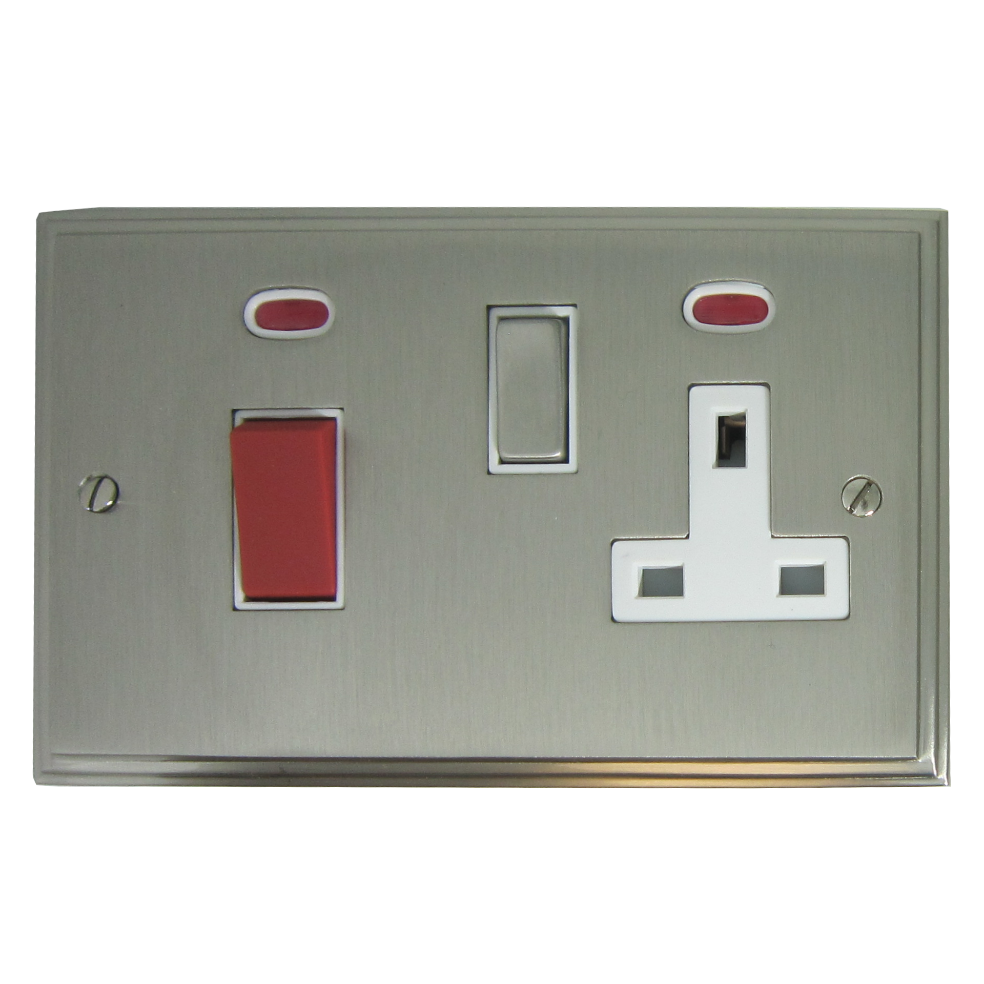 Satin Nickel Red Cooker Switch with Socket (White Insert/Stainless Steel Switch) - G+H VSN229