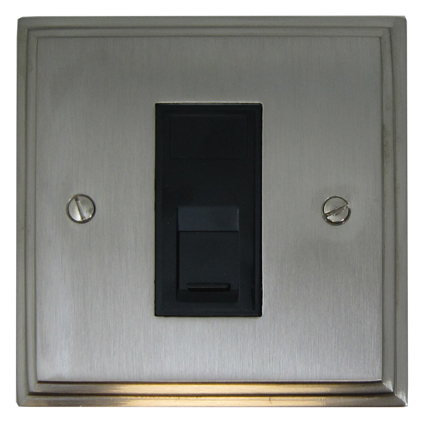Satin Nickel RJ45 Socket (1 Gang/Black Insert)