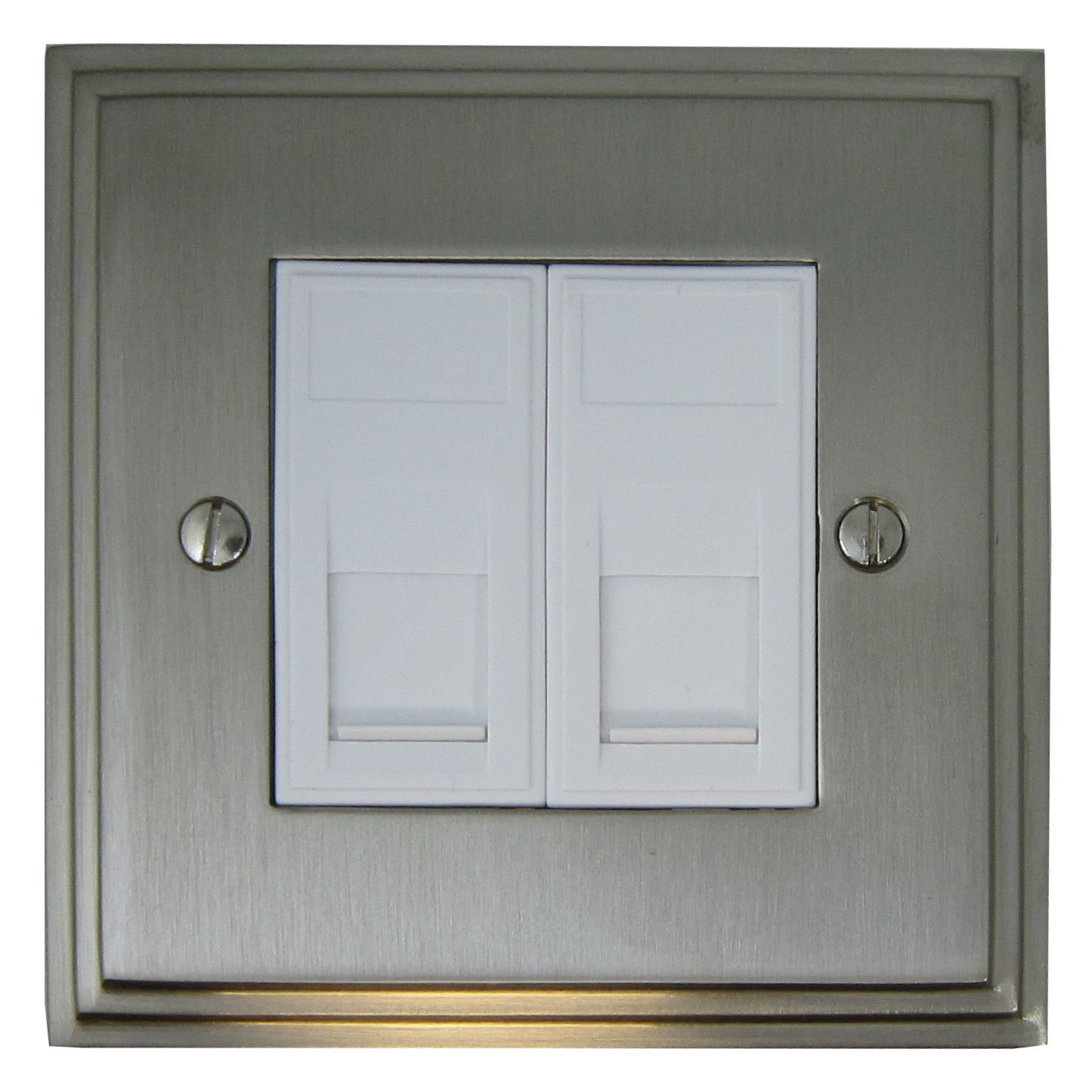 Satin Nickel RJ45 Socket (2 Gang/White Insert)