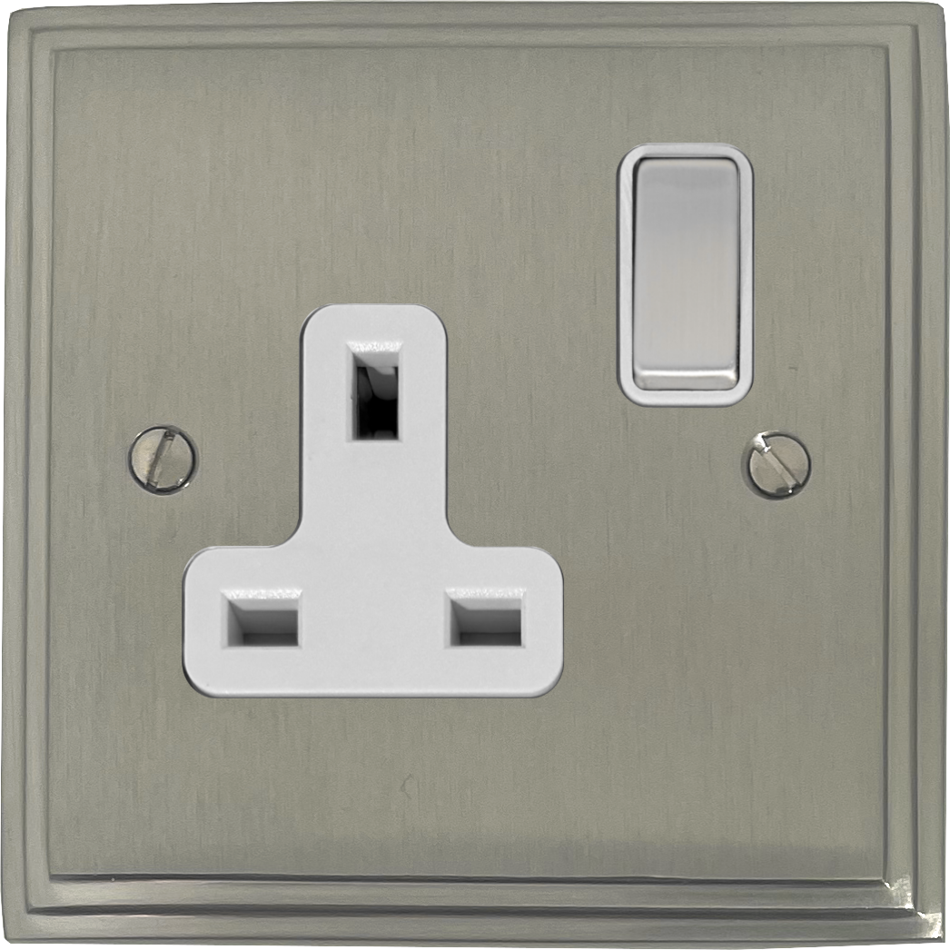 Satin Nickel Single Socket (White Insert/Steel Switch) - G+H VSN209