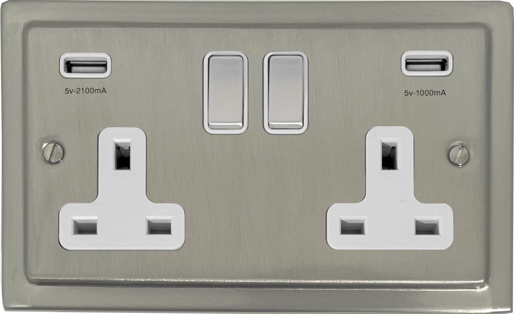 Satin Nickel Socket with USB (Double Socket/Metal Switches/White Insert) - G+H TSN2910