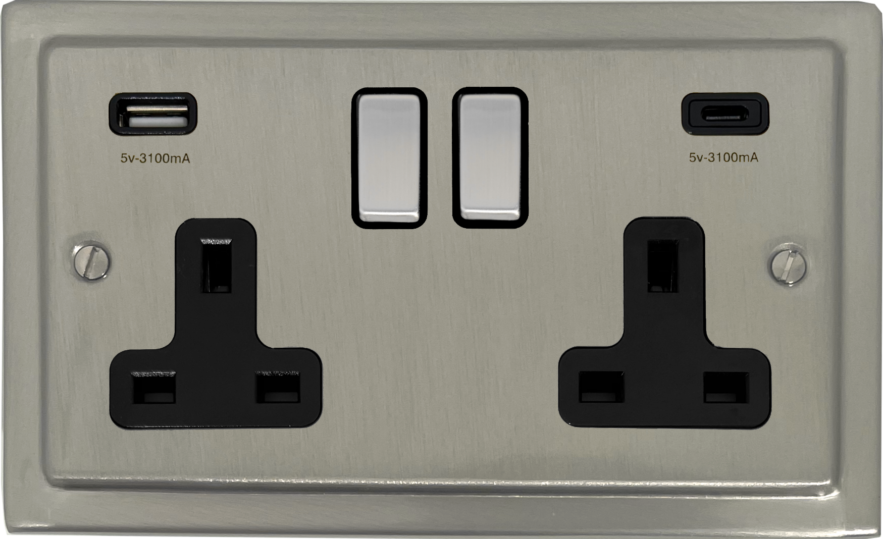 Satin Nickel Socket with USB (USB-A and USB-C/Black Insert/Matching Switches) - G+H TSN3911