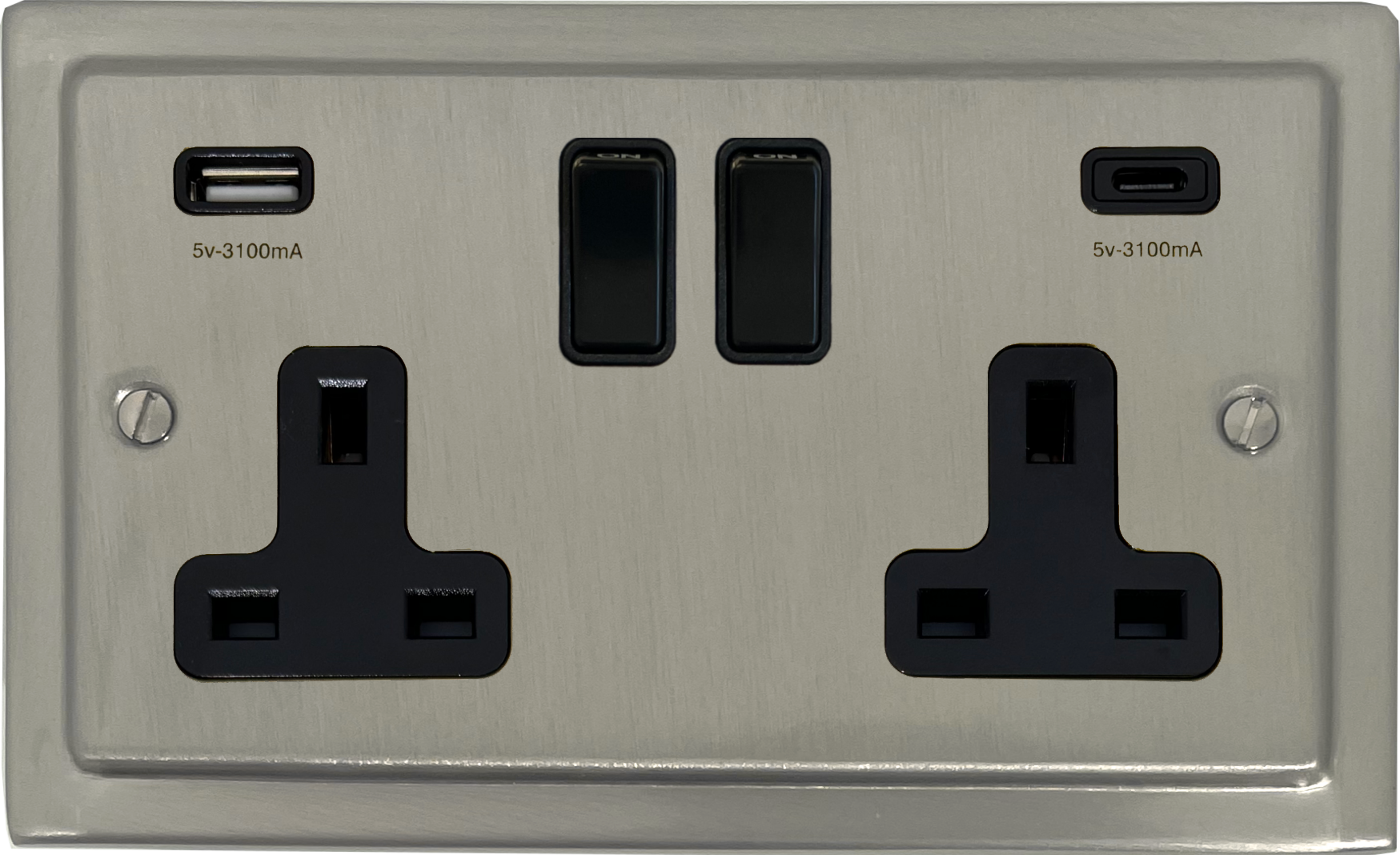Satin Nickel Socket with USB (USB-A and USB-C/Black Switches) - G+H TSN911B