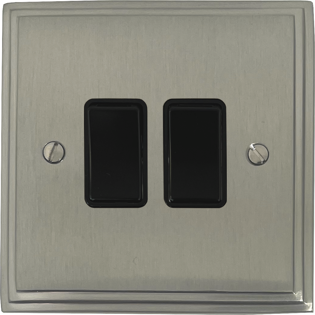 Satin Nickel Switch (2 Gang/Black Switches) - G+H VSN2B