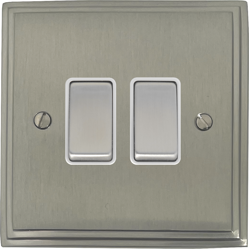 Satin Nickel Switch (2 Gang/White Insert/Steel Switches) - G+H VSN202