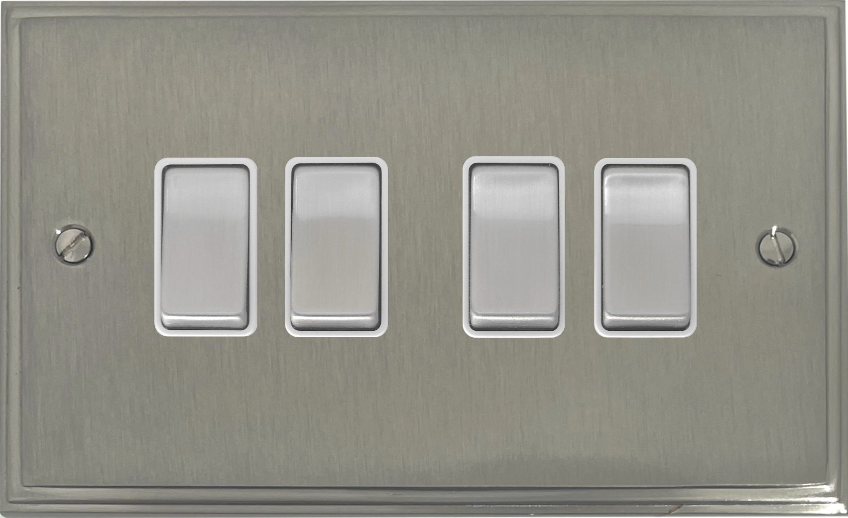 Satin Nickel Switch (4 Gang/White Insert/Steel Switches) - G+H VSN204