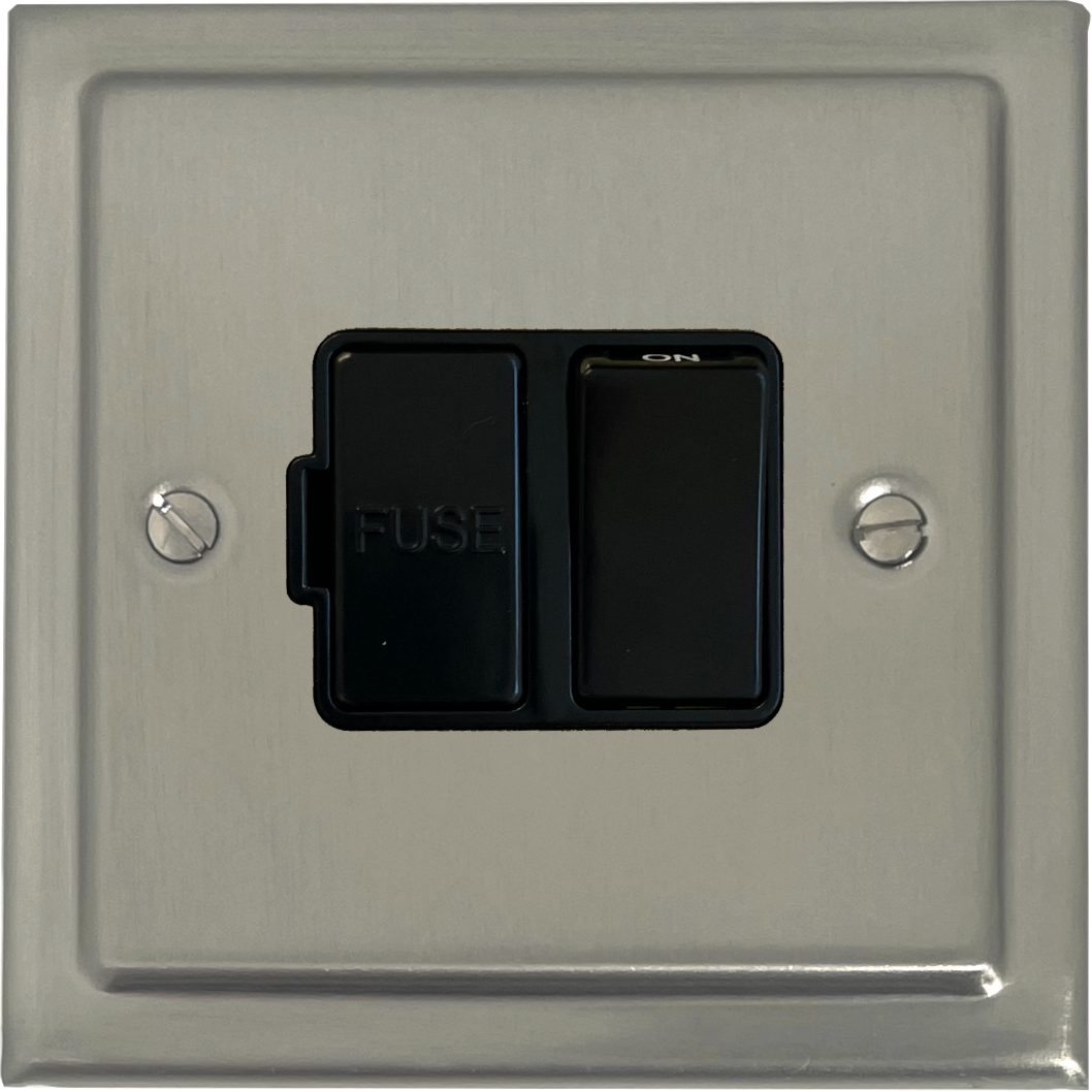Satin Nickel Switched Fused Spur (Black Switch) - G+H TSN57B