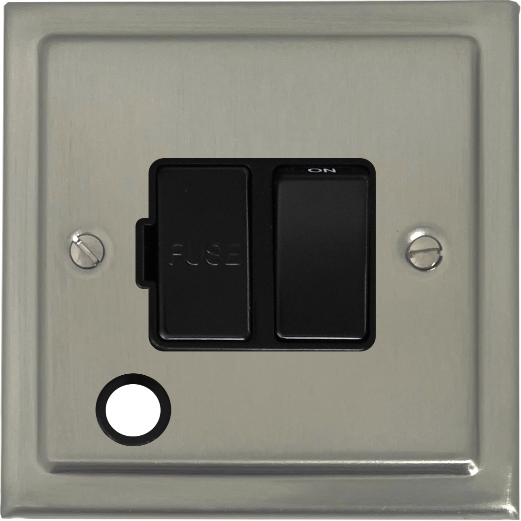 Satin Nickel Switched Fused Spur (Flex Outlet/Black Switch) - G+H TSN56B
