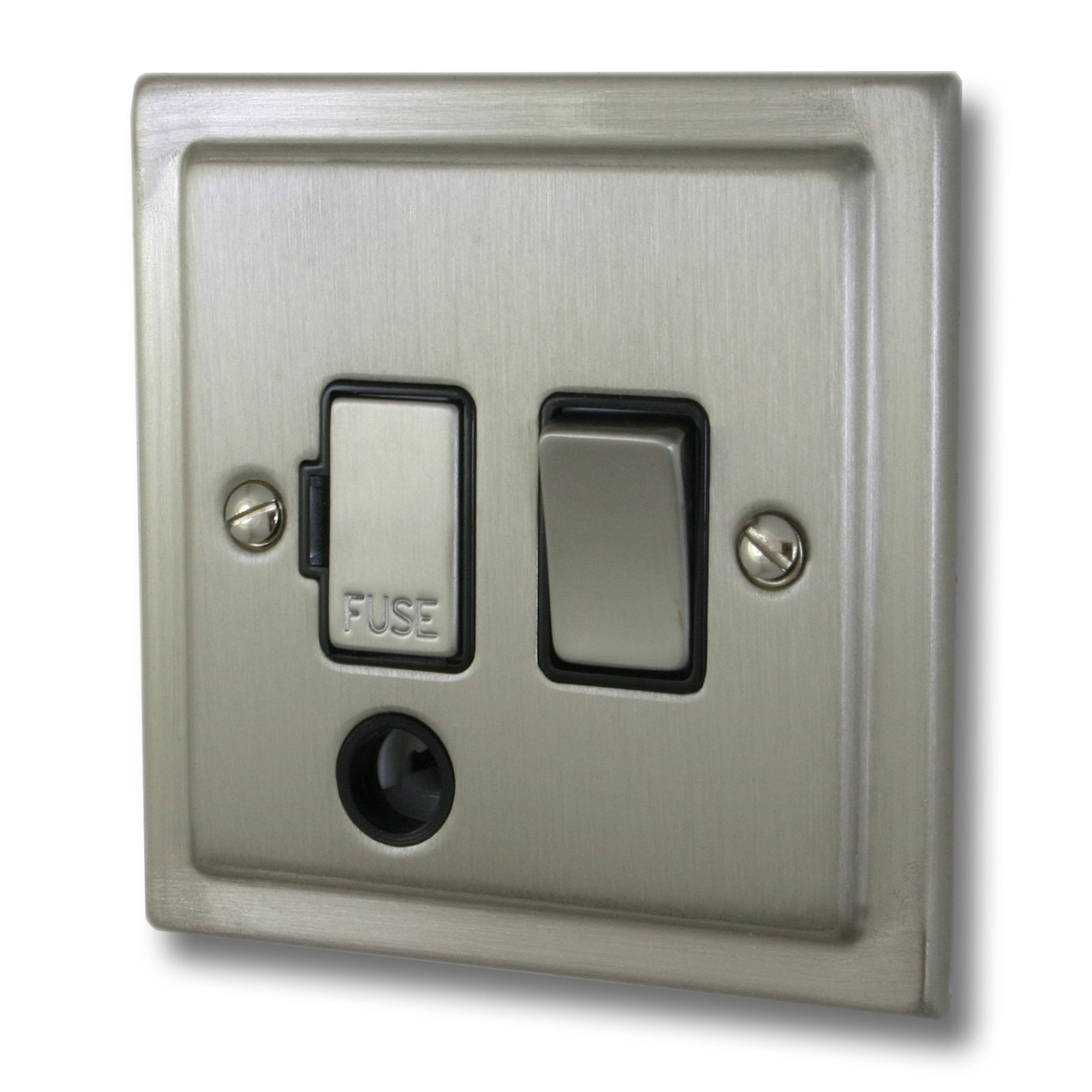 Satin Nickel Switched Fused Spur (Flex Outlet/Metal Switch/Black Insert) - G+H TSN356