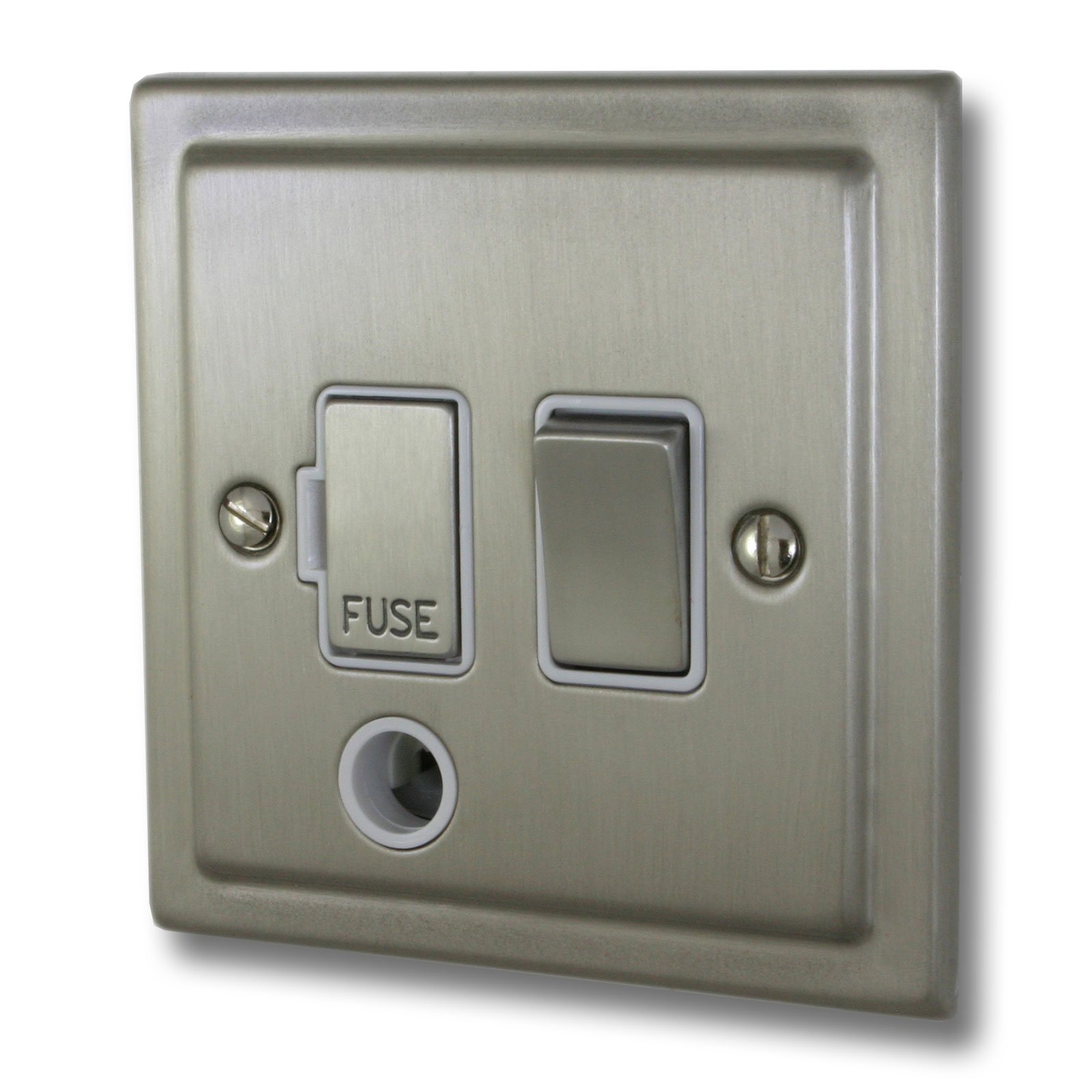 Satin Nickel Switched Fused Spur (Flex Outlet/Metal Switch/White Insert) - G+H TSN256