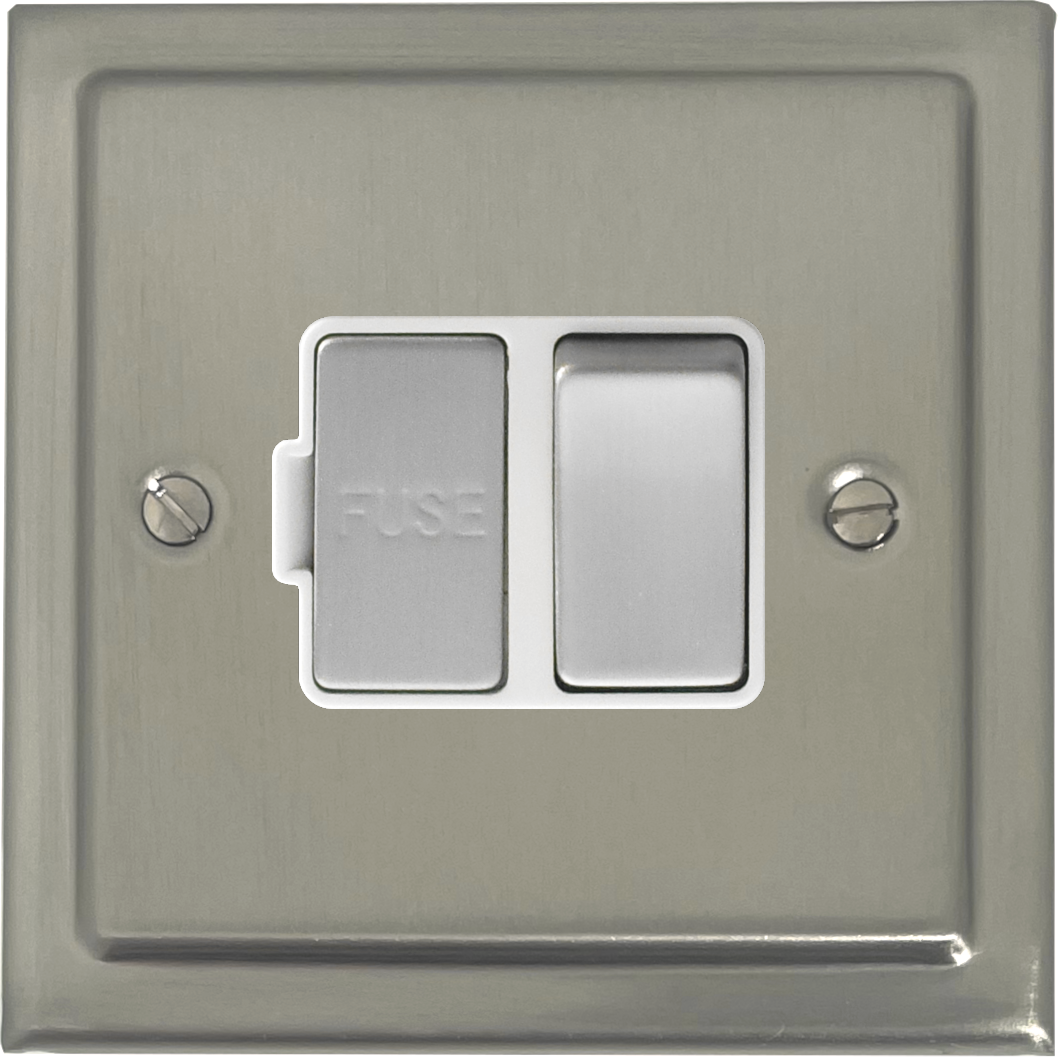 Satin Nickel Switched Fused Spur (Metal Switch/White Insert) - G+H TSN257