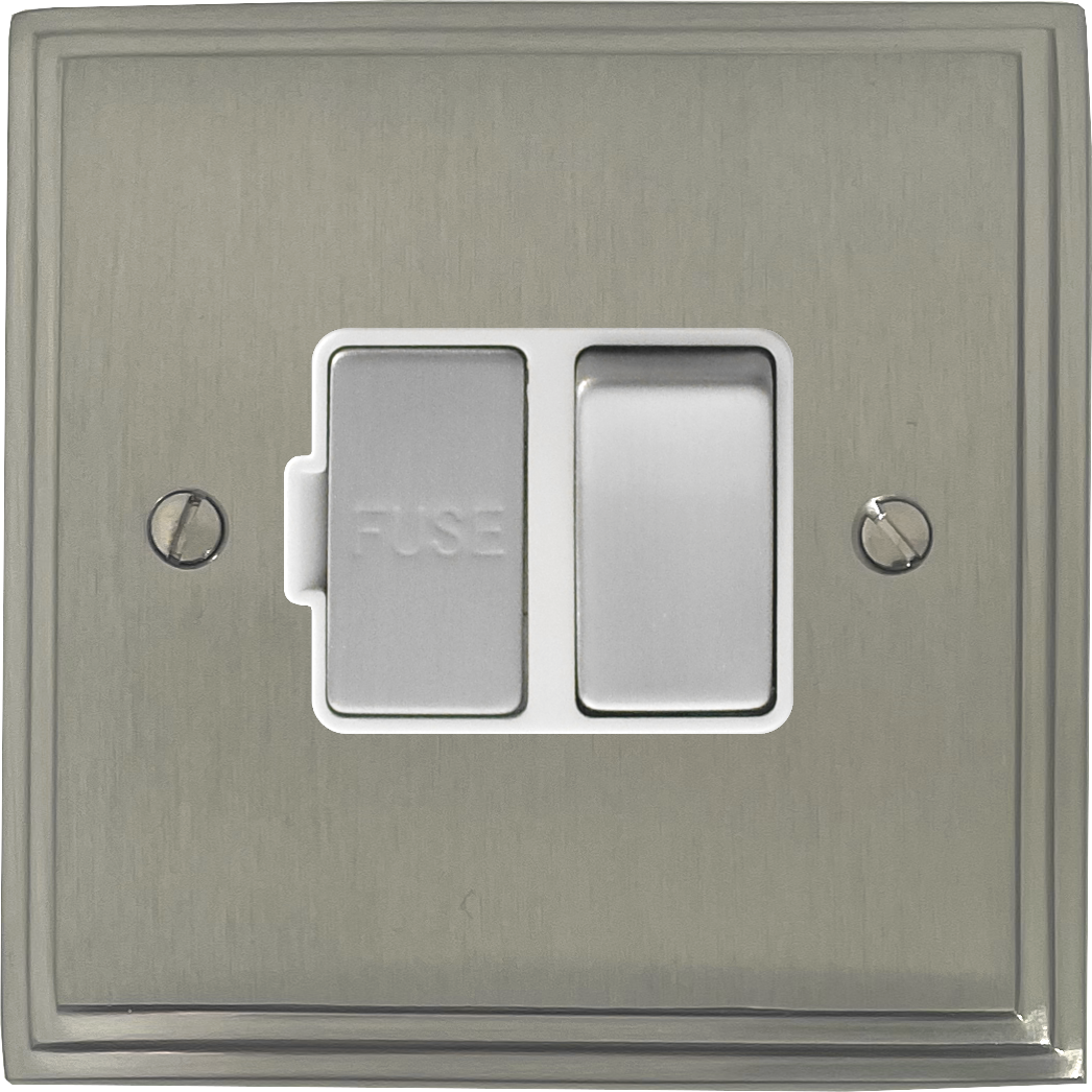 Satin Nickel Switched Fused Spur (White Insert/Stainless Steel Switch) - G+H VSN257