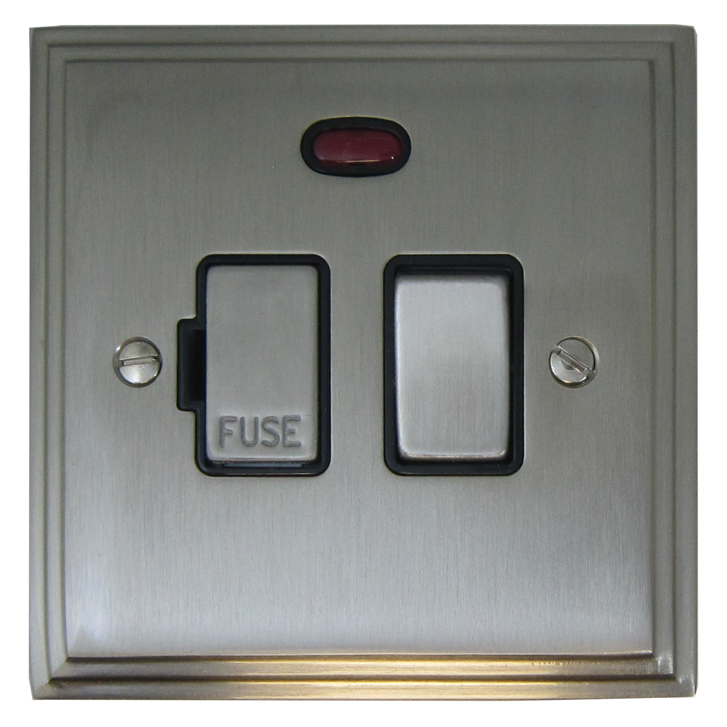Satin Nickel Switched Fused Spur with Neon (Black Insert/Stainless Steel Switch) - G+H VSN327