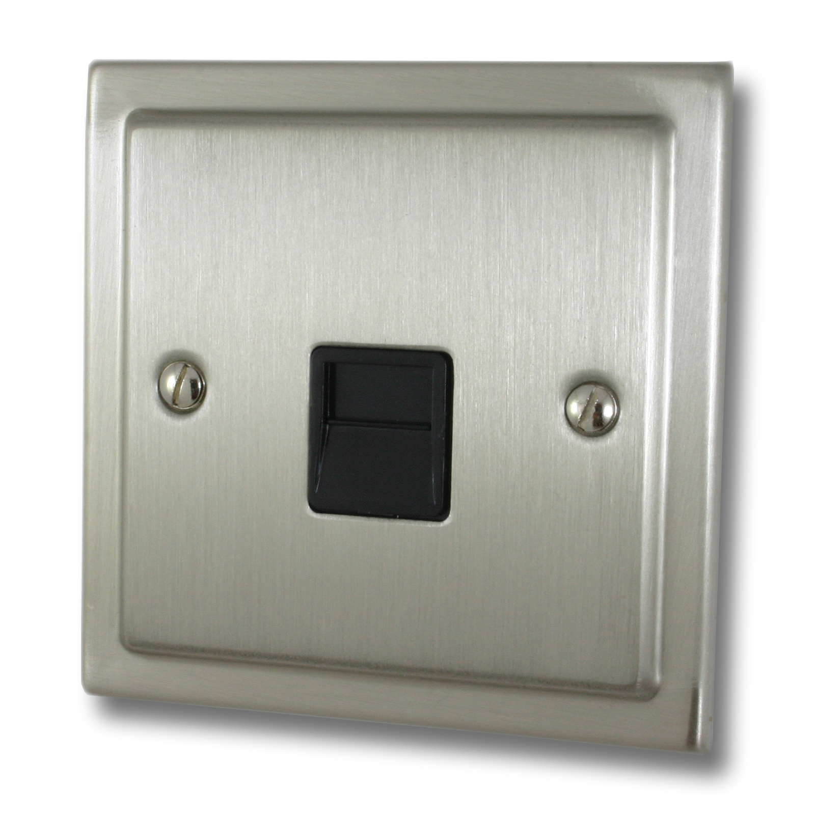 Satin Nickel Telephone Socket (Slave/Black Insert)