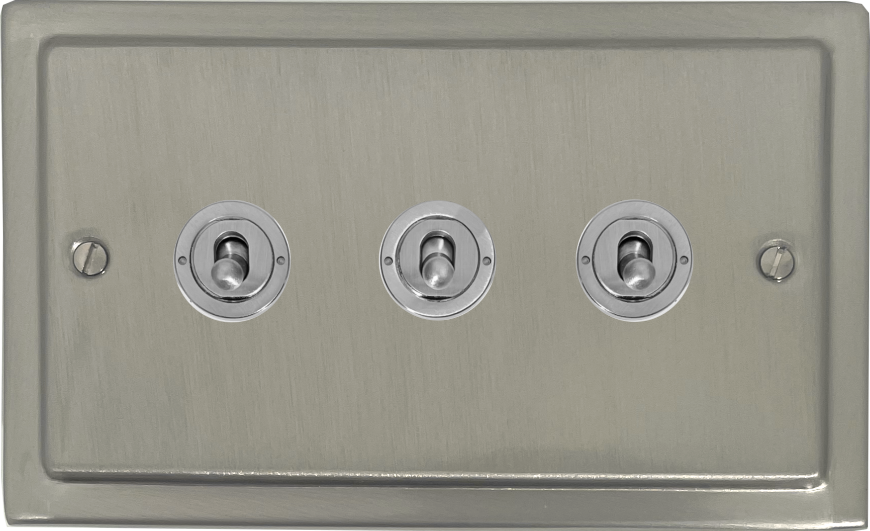 Satin Nickel Toggle Switch (3 Gang) - G+H TSN383