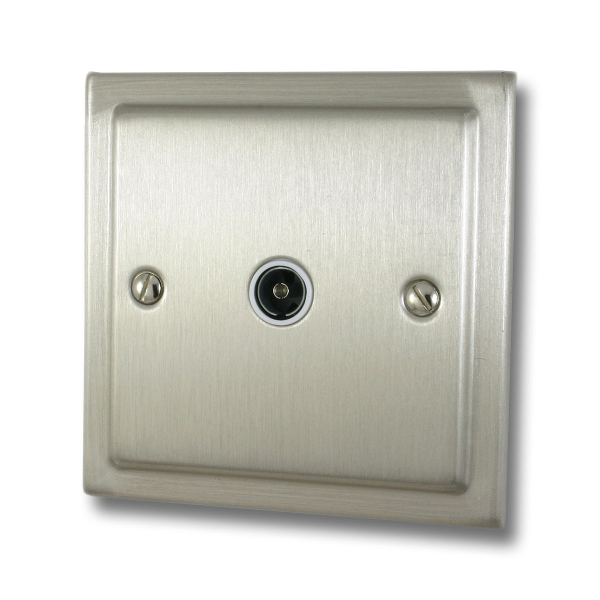 Satin Nickel TV Socket (1 Gang/White Insert)