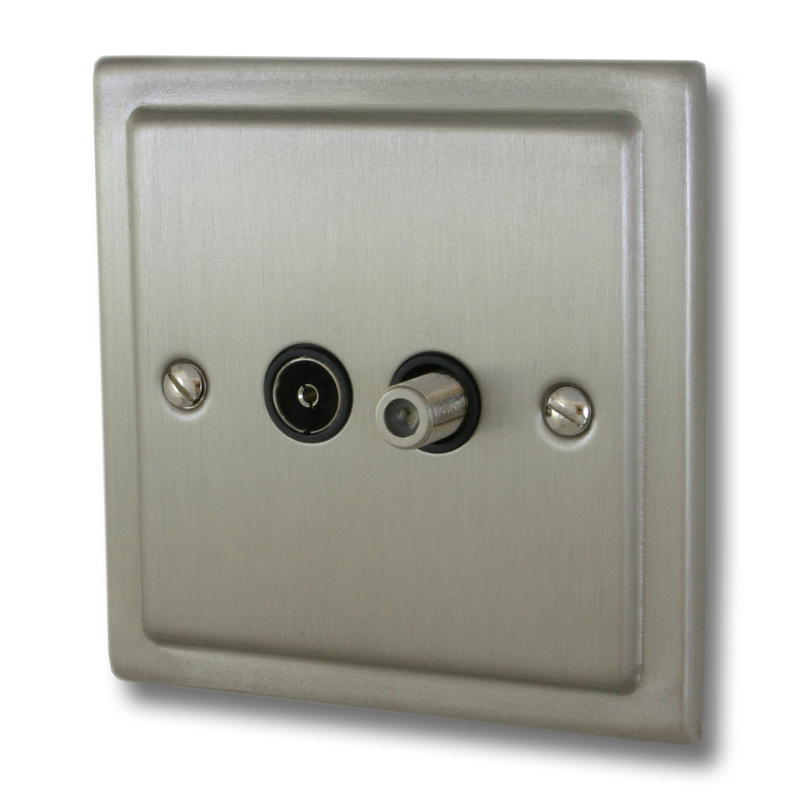 Satin Nickel TV/Satellite Socket (Black Insert)